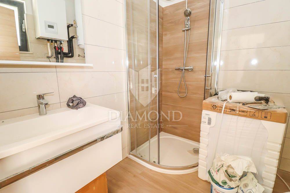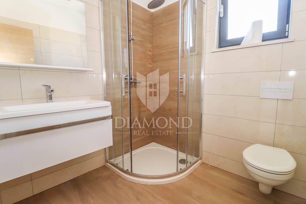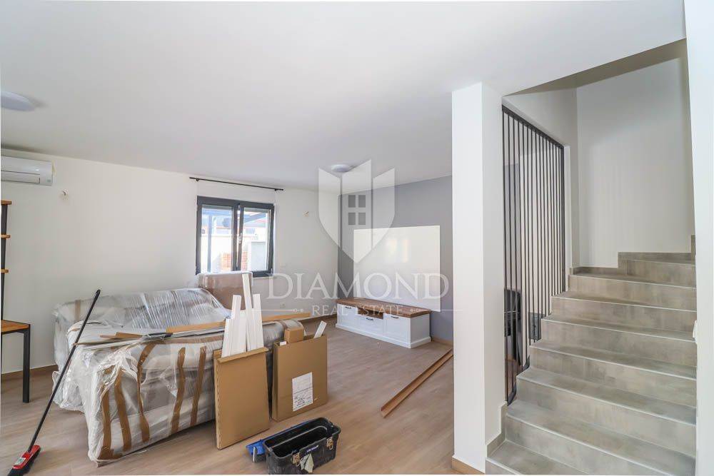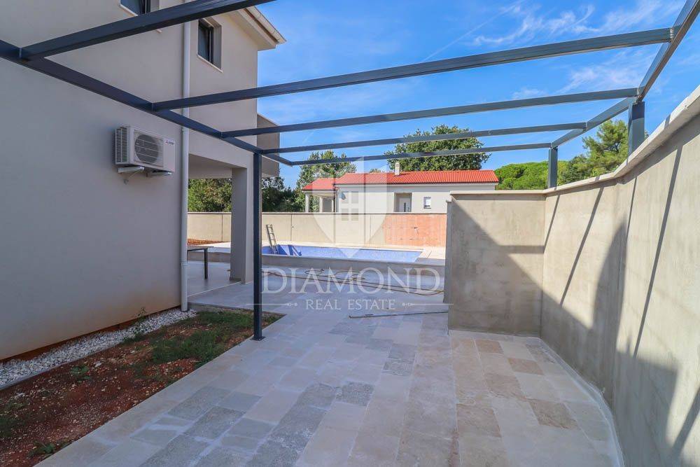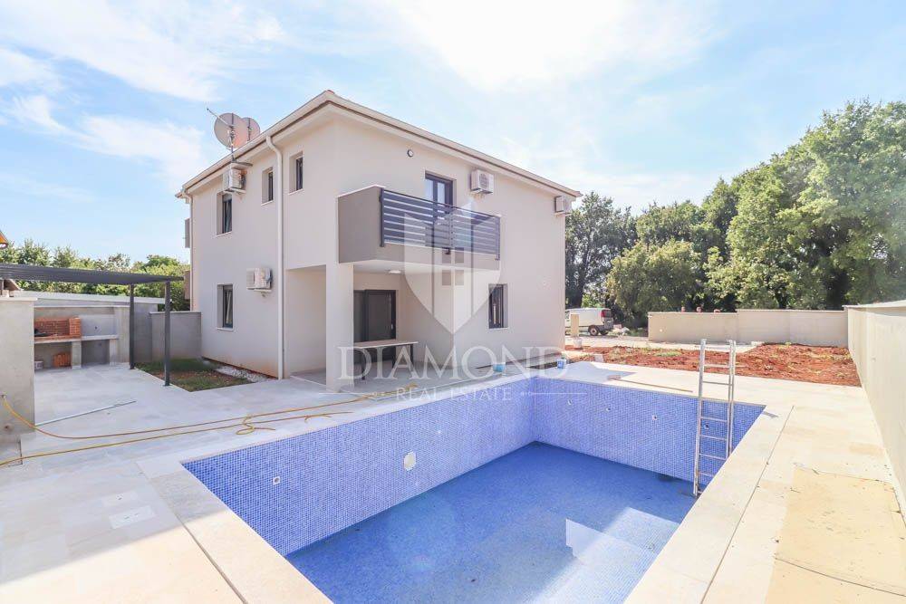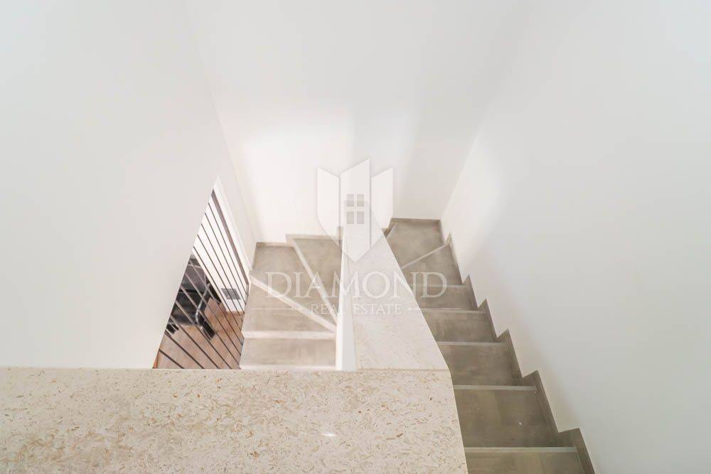 This new building is for sale, located in a quiet place near the sea and the forest. Excellent transport links, Medulin is only a few minutes away, while Pula and the airport are less than a 10-minute drive away. The sea and beaches are only 400 meters from the house. All necessary facilities for life are located in the immediate vicinity. The house is surrounded by holiday homes and the semi-detached building contains three apartments on the other side.