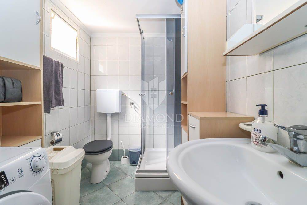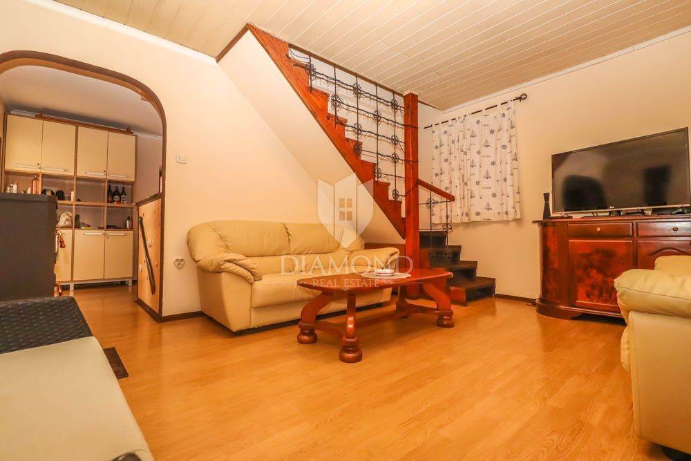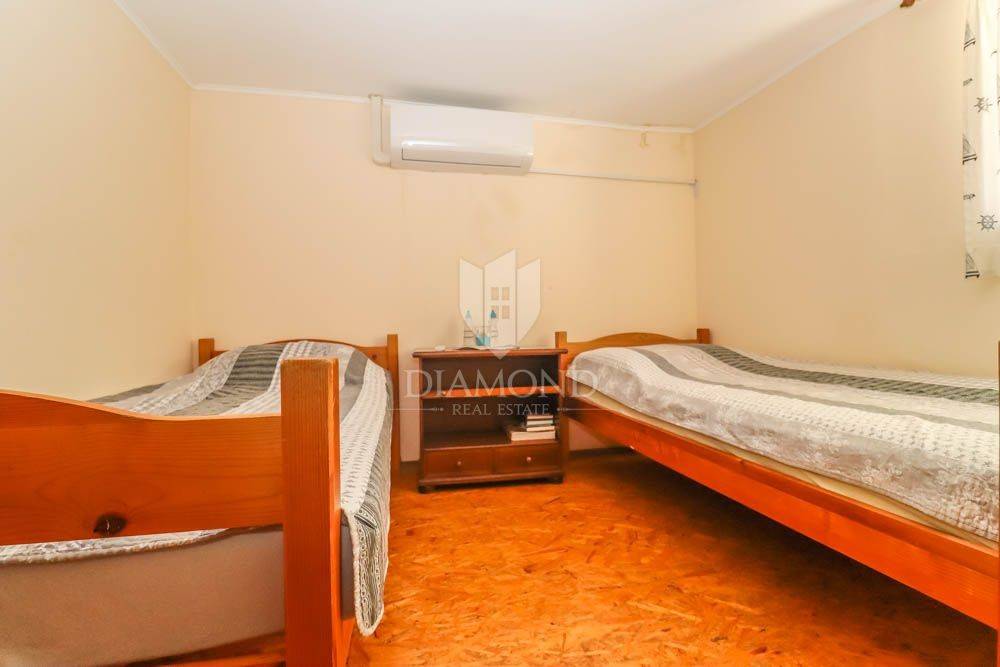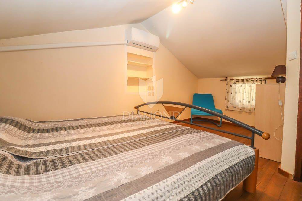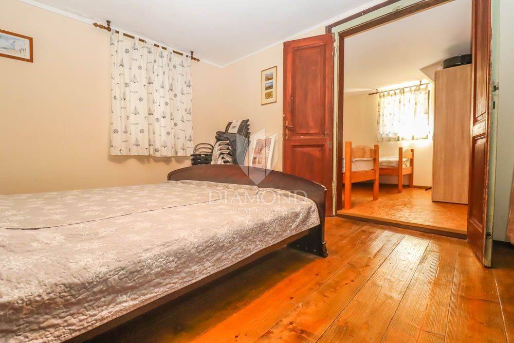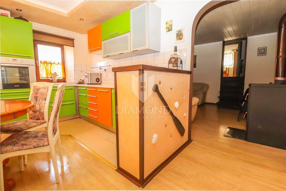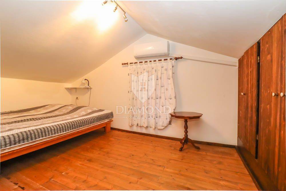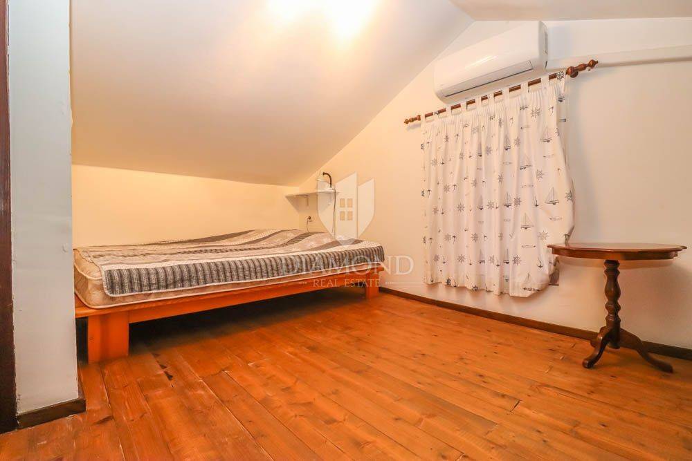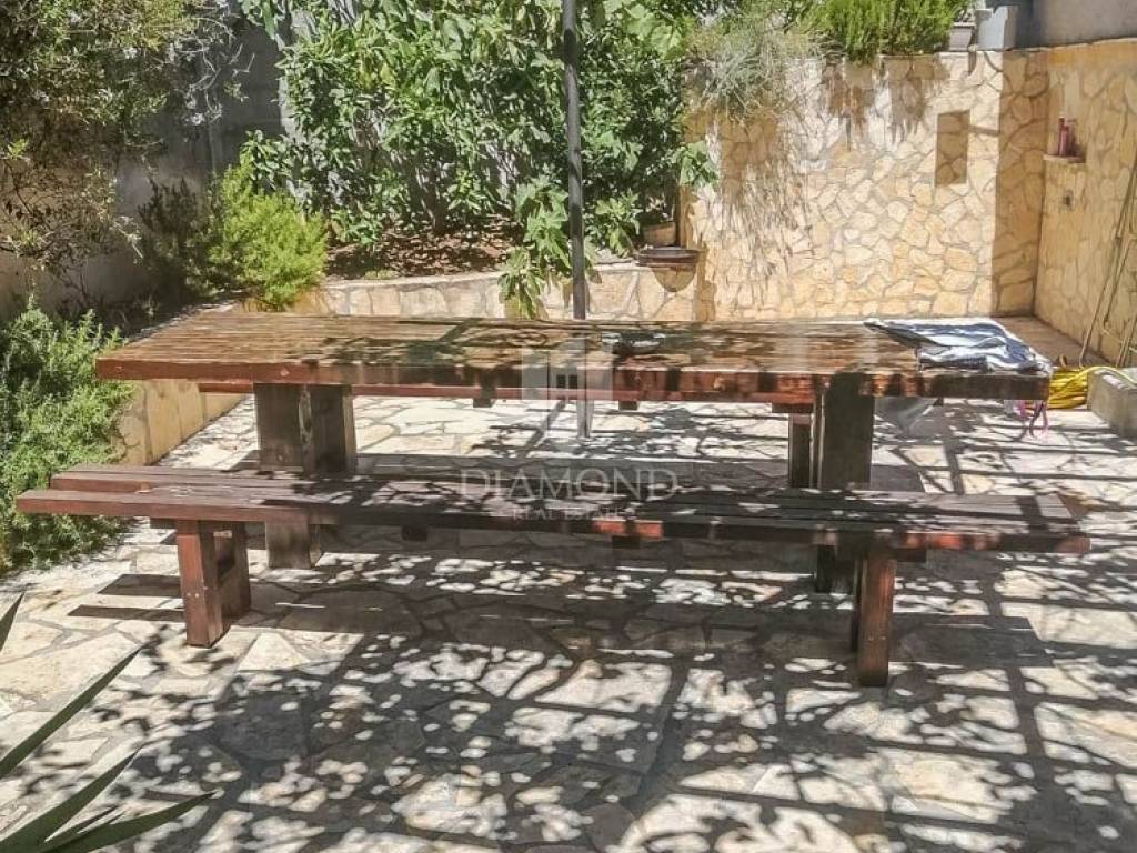 The house covers 140m2. It consists of an entrance hall that leads to the kitchen, bathroom and dining room, followed by a spacious living room. Downstairs there are two spacious bedrooms, and the staircase also leads to two more bedrooms located in the attic of the house. In the garden there is a spacious terrace in front of the entrance to the house and behind the house a summer kitchen with a beautiful large barbecue and another private terrace, ideal for night gatherings in a beautiful environment and good company. The house offers many possibilities since it has the possibility of building two more floors, which would use the full potential of this unique location. In the garden there is also an outdoor shower, various fruit trees and a storage room of 6 m2, which can also be converted into an additional apartment with minor adaptations. The parking lot is located in front of the entrance.