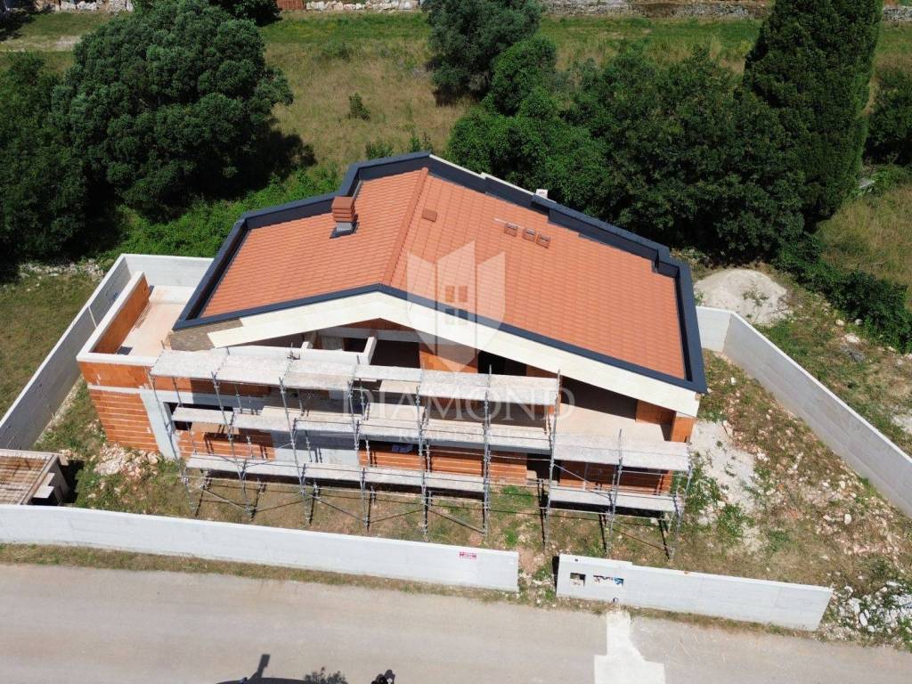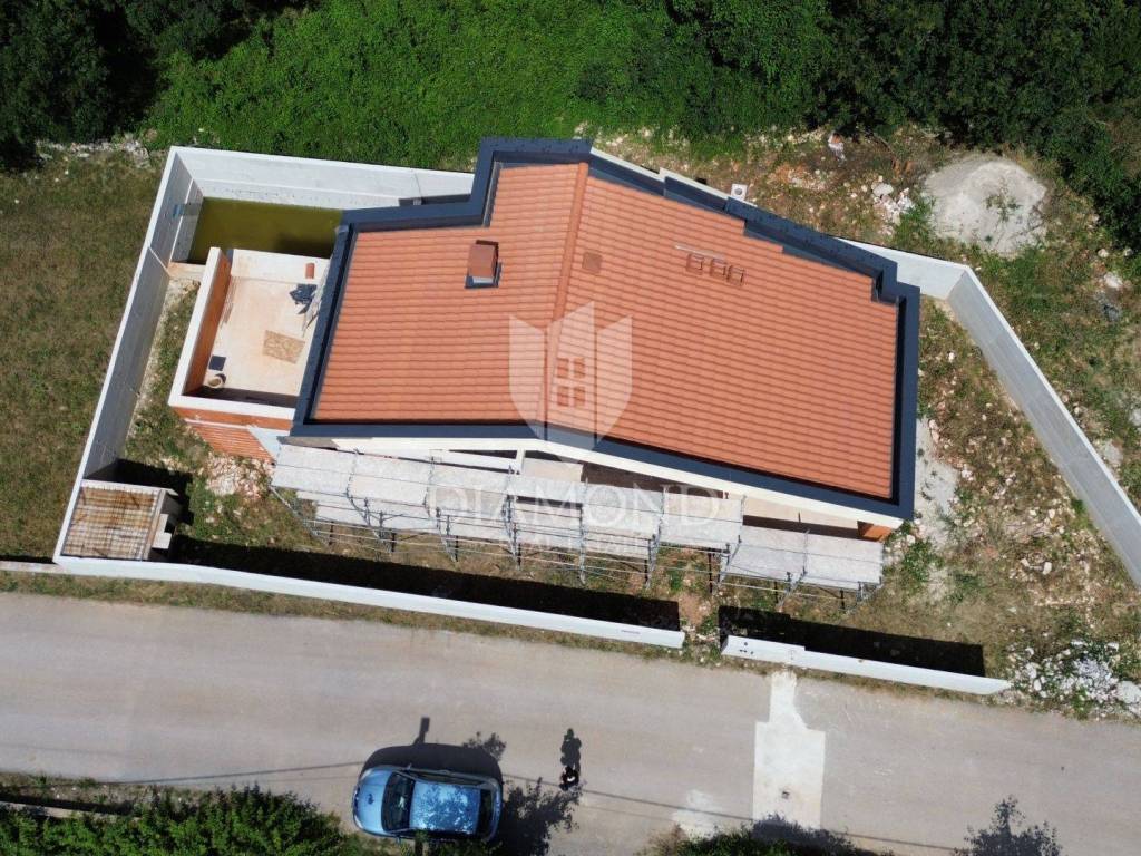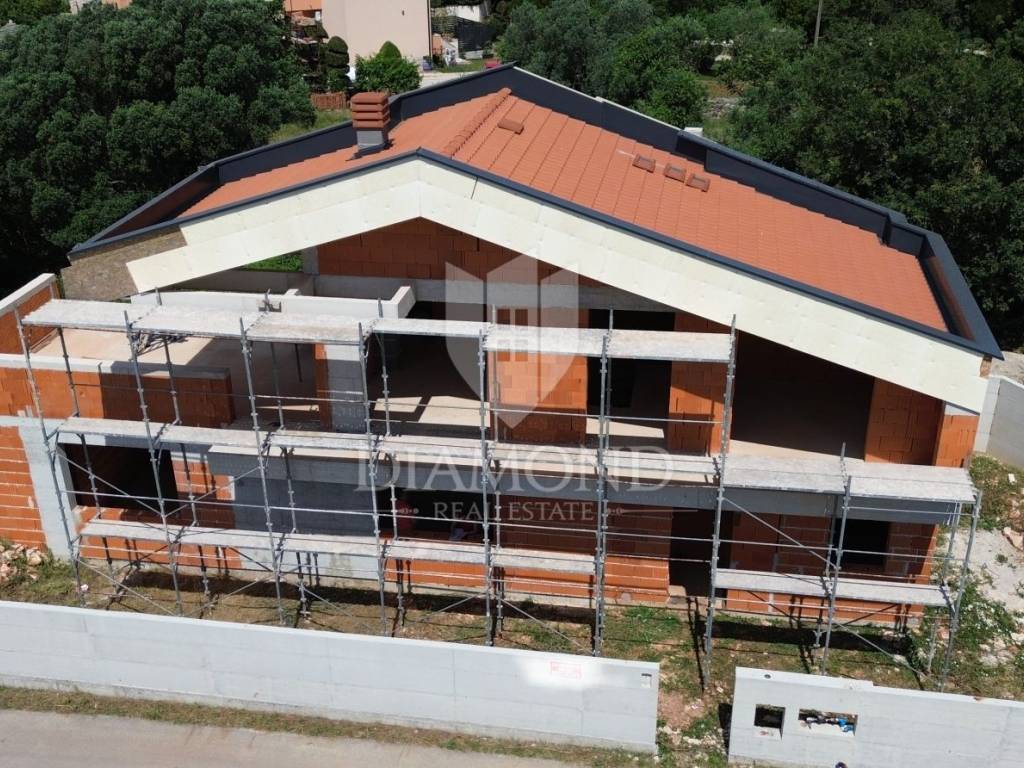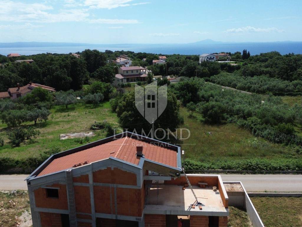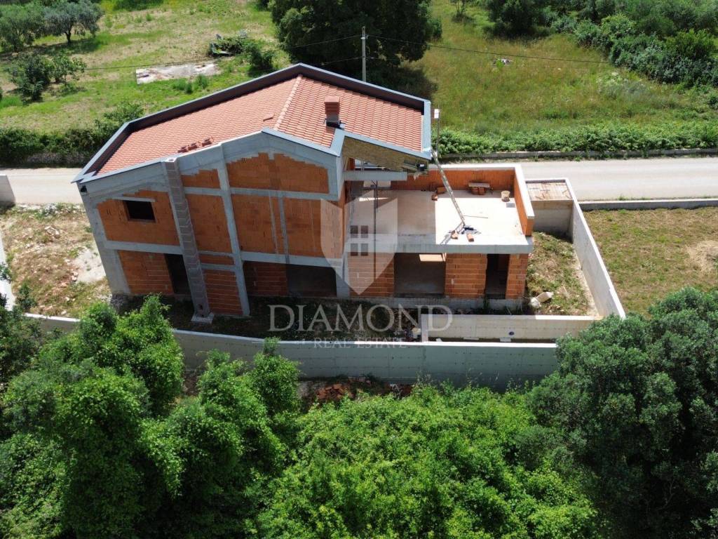 Marčana, Rohbau house with a sea view We are selling a modern house under construction, located in an attractive location with a beautiful sea view. Construction began at the end of 2023, and the house promises a luxurious and comfortable living space. The house is spread over two floors. On the ground floor there is a spacious kitchen, living room and dining room, all connected in an open concept that is centered around an elegant double-sided fireplace. The ground floor also includes one bedroom with its own bathroom and an additional bathroom and storage, which are practically connected to the outdoor pool, sundeck and summer kitchen. An internal staircase leads to the first floor, where there are two spacious bedrooms, each with its own bathroom. The floor also has two spacious terraces with spectacular sea views, providing the perfect place to relax and enjoy the scenery. The property is being sold in the unfurnished stage, with the possibility of an agreement on the completion of the works with the seller. The property is in order, and all the necessary project documentation is available. This house represents a perfect combination of modern design, functionality and comfort. If you are looking for a simple yet luxurious home with an amazing view, this is the ideal opportunity for you. Contact us for more information and to arrange a viewing. Do not miss the opportunity to become the owner of this extraordinary property!
