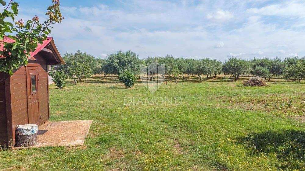 The land covers 2300 m2, half of which is construction land, and the other half is agricultural land, i.e. a beautiful olive grove. Olive trees are not the only thing that adorns this land, there are also fruit trees such as pears, apples, walnuts and various others. On the land there is also a small wooden house that serves as a storage room and a small laundry room.