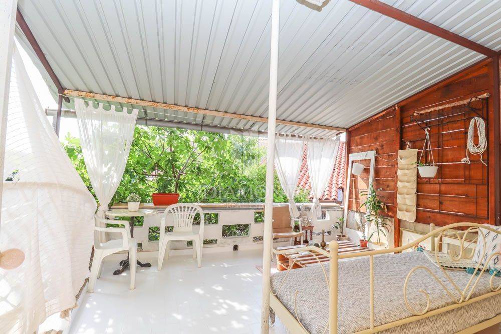 This spacious 100 m² three-bedroom house offers exceptional functionality and comfort. On the ground floor there is a bedroom, a kitchen that connects to the living room, and from which you exit to the garden. Two additional bedrooms are located upstairs, while the dressing room offers additional storage space. Enjoy relaxing on two terraces - one under the vine, perfect for summer moments, and the other large, beautifully decorated terrace ideal for peace and enjoyment. The house also offers a laundry room and storage room, and there is also the possibility of upgrading.