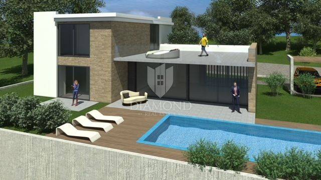 We offer an attractive plot of land with a valid building permit, located just 18 km from the beautiful sea coast and the city of Poreč. The plot comes with a construction permit, and the project includes the construction of two luxury villas with a swimming pool. If desired, changes to the project are possible to adapt it to your needs. Only 3 km away from all necessary amenities, this area offers an ideal balance between a peaceful environment and proximity to urban infrastructure. Nearby are shops, a school, a kindergarten, a post office and top-notch catering facilities, as well as authentic Istrian taverns and wineries that provide a unique gastronomic experience. This property is an ideal opportunity to invest in a Mediterranean lifestyle with modern comforts. With its location and potential, it offers the opportunity for a peaceful family home or an attractive investment in tourism. Do not miss the opportunity to become the owner of this exceptional plot of land in the heart of Istria!