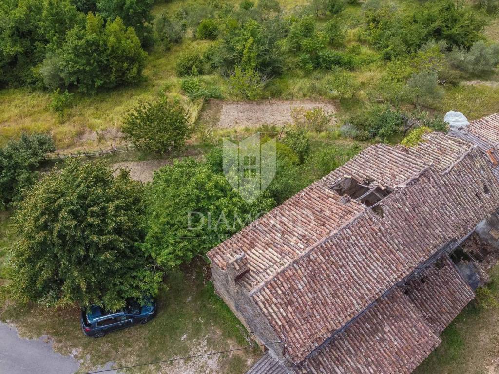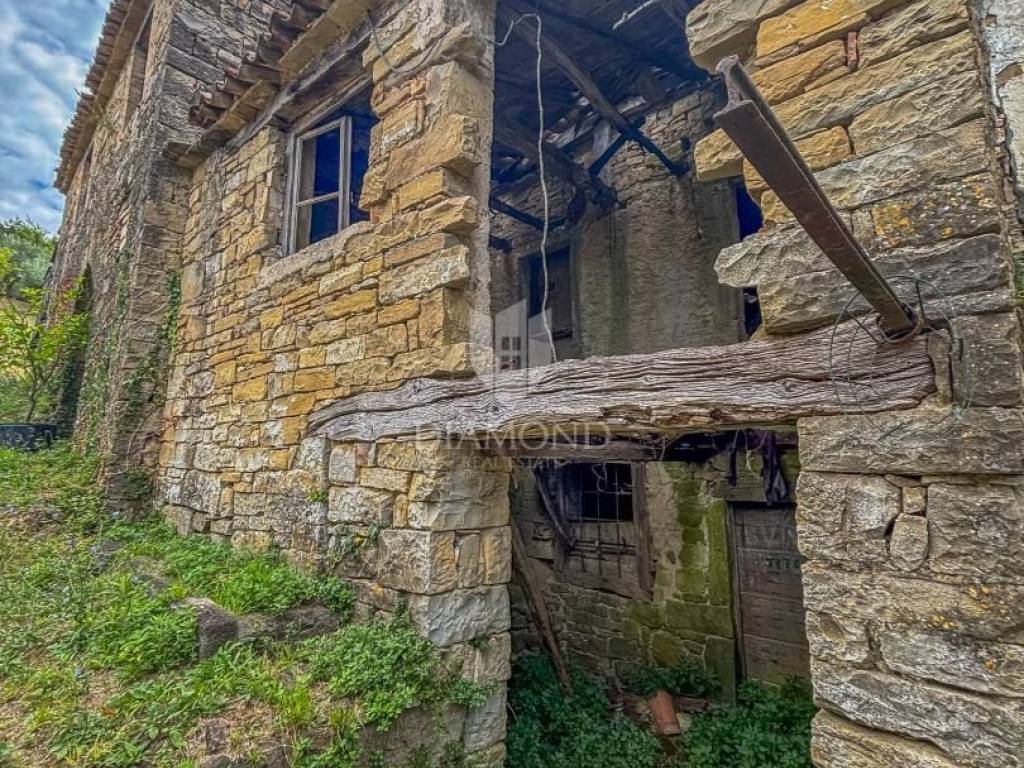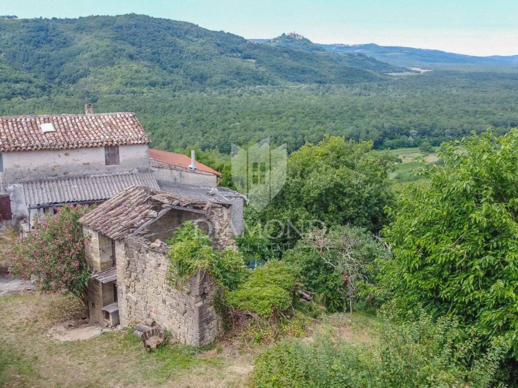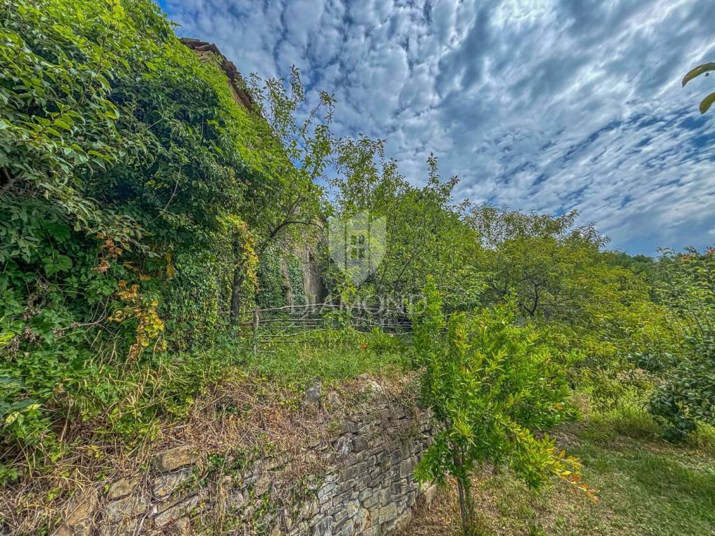 In the very heart of idyllic Istria, surrounded by untouched nature and peace that you can hardly find elsewhere, this charming small property is located in a quiet hamlet with two stone ruins and a spacious garden. With a total area of 550 m², this property offers the perfect opportunity for those looking for an authentic Istrian environment, whether for personal vacation, permanent residence or investment for tourist purposes. The property is located in a small Istrian village of only a few houses, the owner is selling his two stone houses, which are currently in a dilapidated state, but radiate old-fashioned charm and provide an excellent basis for renovation in a traditional style. The stone walls, original architecture and position on slightly elevated terrain provide plenty of opportunities to create a unique villa or rustic holiday home with a view of Motovun. The spacious garden offers enough space for arranging the outdoor space - a Mediterranean garden, a swimming pool, a summer kitchen or a gazebo - with a view of the surrounding hills and the greenery that surrounds the entire property. The location offers peace and privacy, yet is easily accessible. The distance to the sea and larger Istrian towns is short, only 20 minutes from the town of Buzet, 15 minutes from Motovun, which makes this property an ideal combination of tradition and practicality.