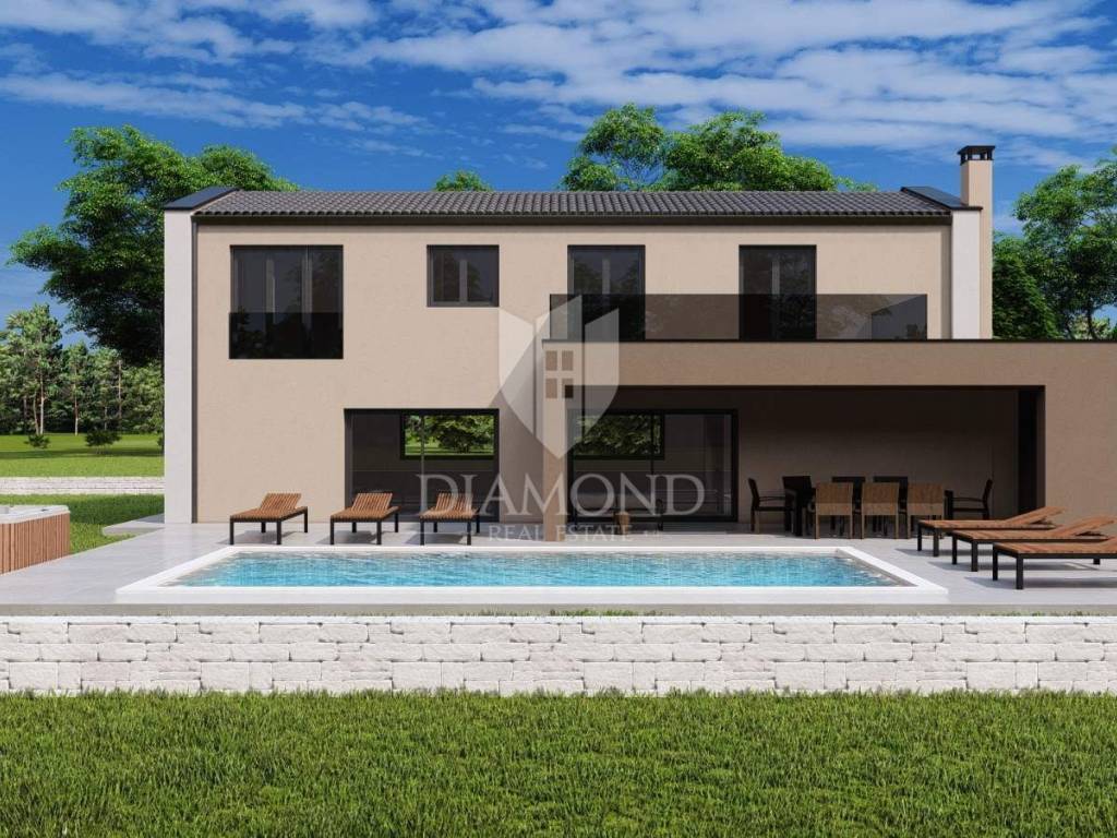 In the peaceful and green surroundings of Poreč is this modern villa that combines luxurious comfort with the privacy of a natural environment. The location offers silence and views of the greenery, while at the same time easy access to the city, the sea and all necessary amenities, making it excellent for both family life and a quality tourist investment.