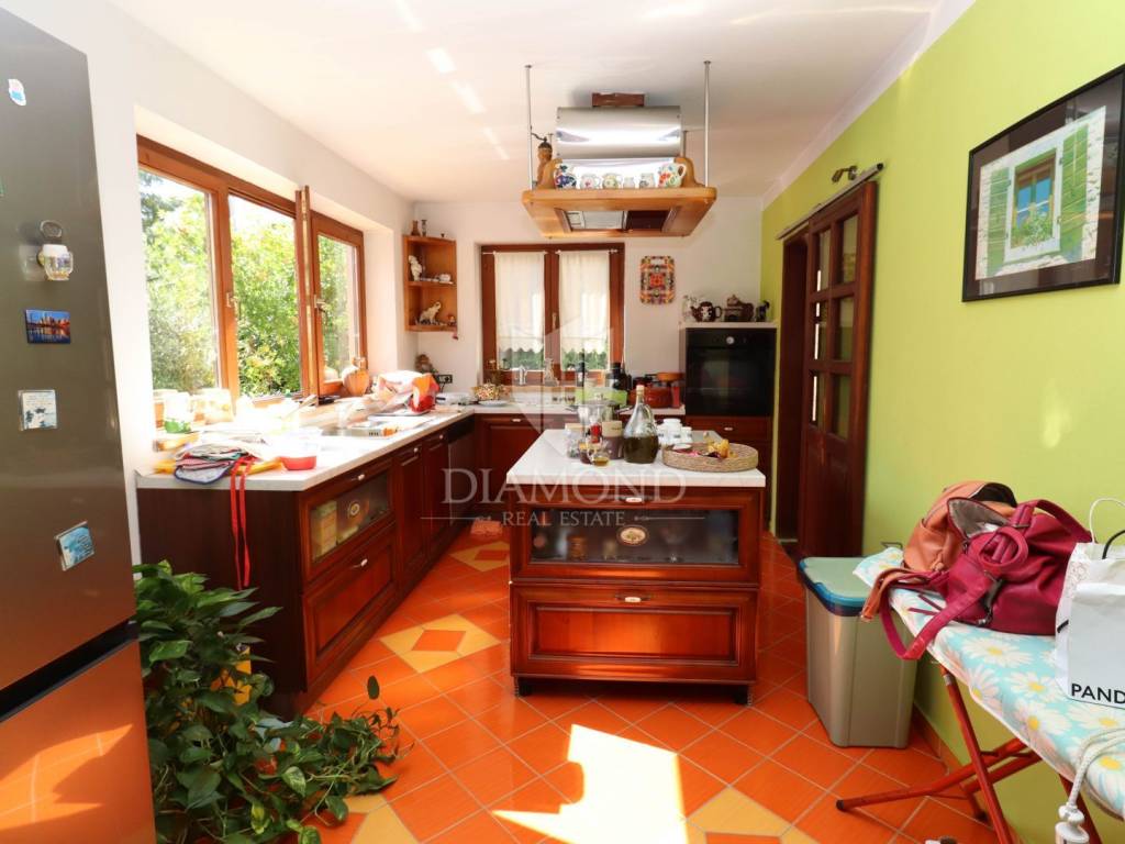 In a prime location in Pomer, just 150 m from the sea, a detached house with a total area of 250 m² is for sale, situated on a beautifully landscaped 440 m² yard with olive trees, a fireplace and a large garage. Additional value is provided by an auxiliary building of 40 m² with electricity and water connections, which can be converted into an apartment, tavern or summer kitchen.