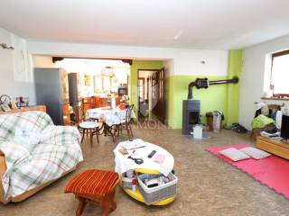 -Ground floor: hallway, kitchen with dining room, large living room with access to the yard, bathroom and storage room.