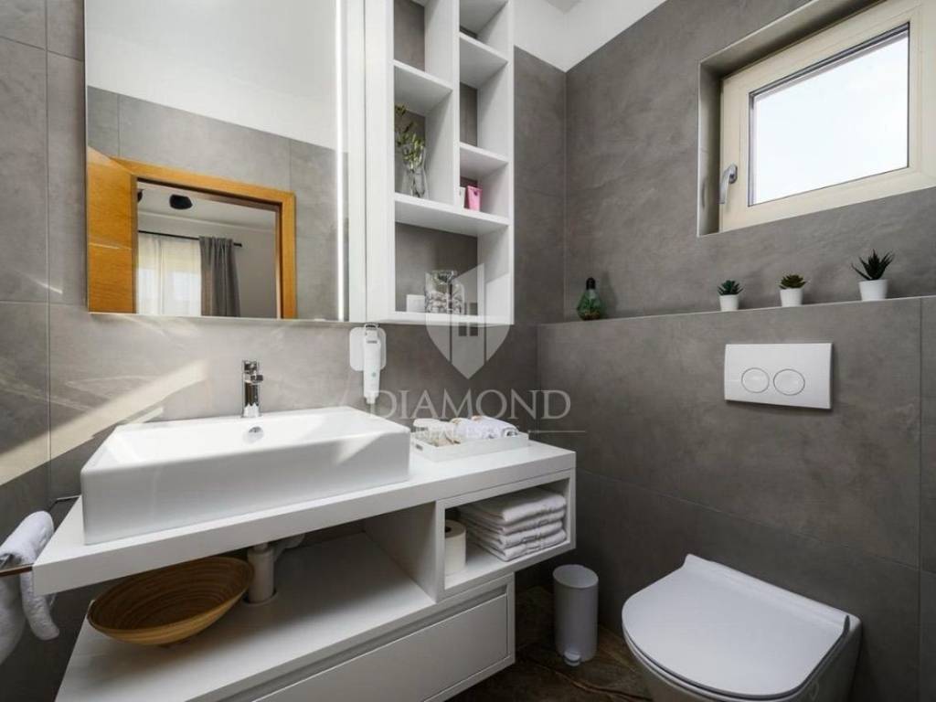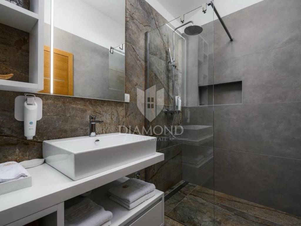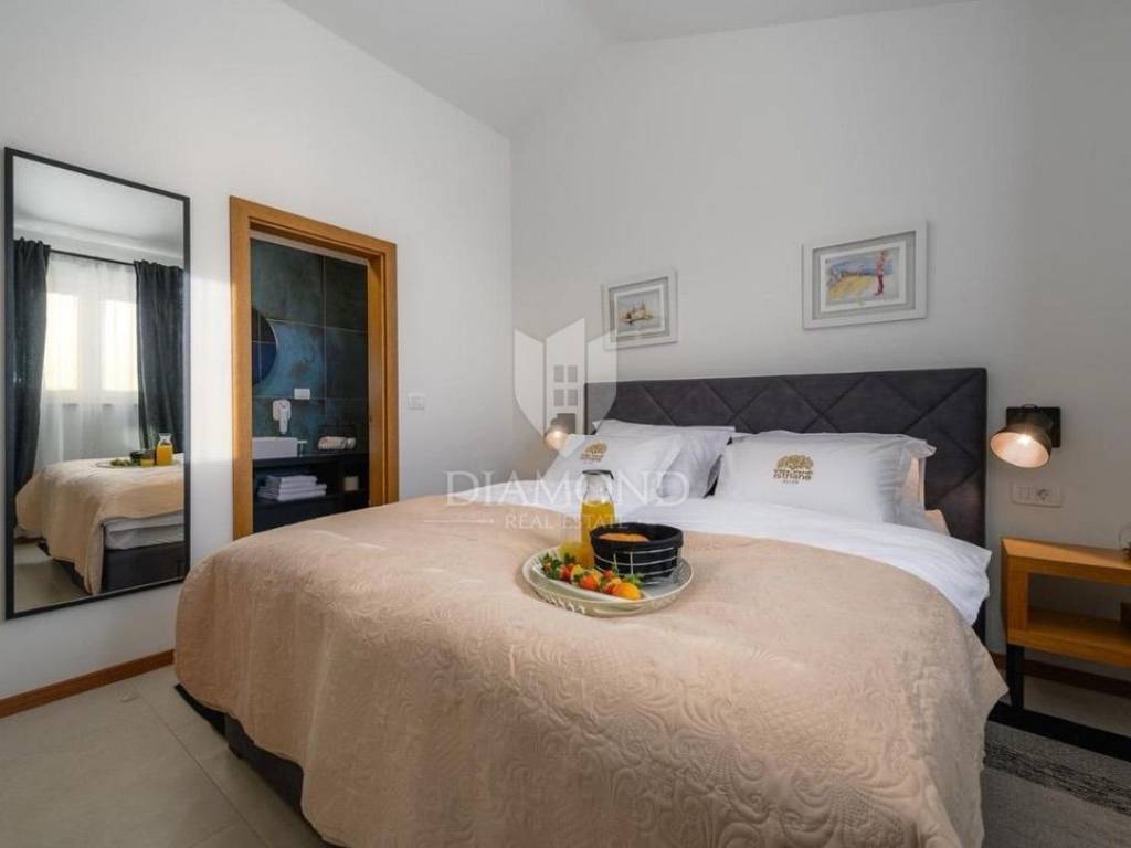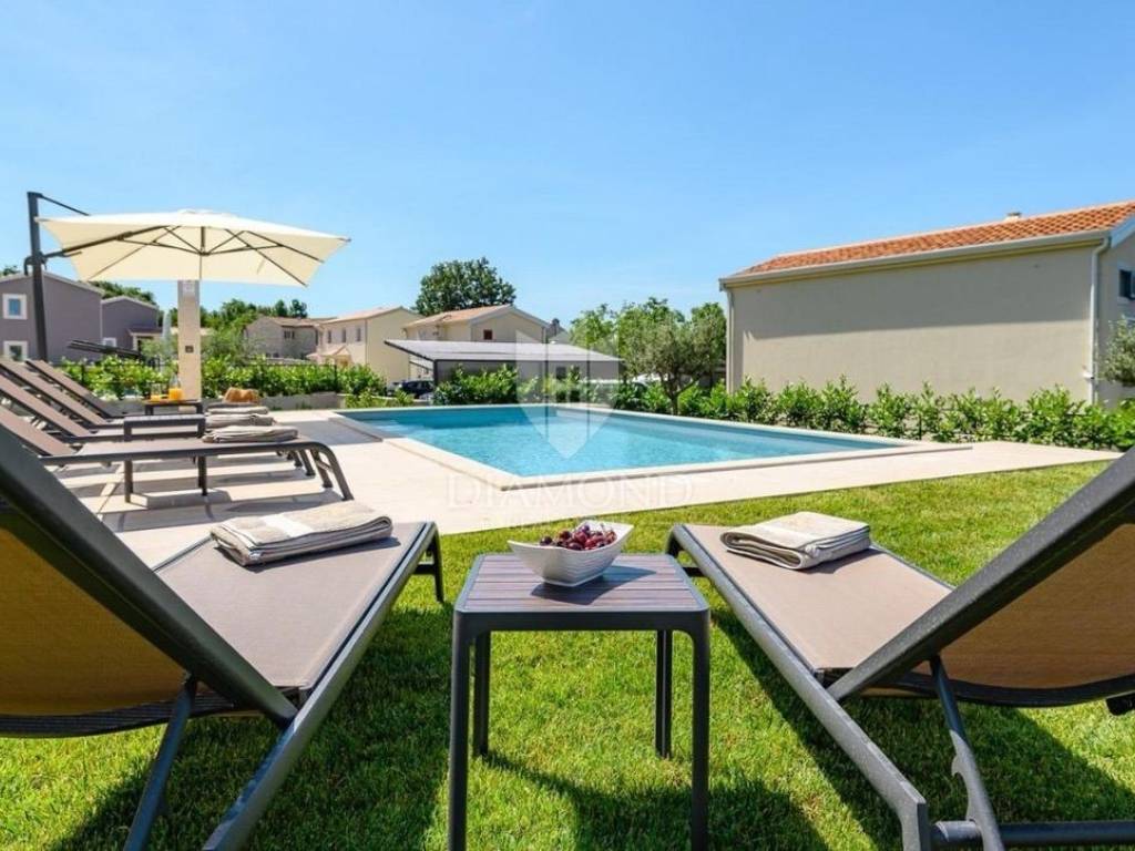 This beautiful property offers the ultimate experience of the Mediterranean lifestyle, providing at the same time peaceful privacy and proximity to all important amenities. Inside the villa, the spacious living area with high ceilings and plenty of natural light creates an impression of airiness and openness. The large windows offer a beautiful view of the surrounding landscapes, while the fireplace adds a dose of warmth and comfort. The contemporary kitchen is equipped with the latest appliances and luxurious details, creating the perfect place to cook and enjoy gastronomic magic. The villa's bedrooms provide an oasis of privacy and relaxation, each with its own bathroom, creating an intimate space for each member of the family or guests. Luxurious equipment and carefully selected materials add a touch of elegance to every room. The highlight of this luxurious home is the heated swimming pool located in a beautiful garden. Surrounded by lush vegetation and flowering shrubs, the pool is the perfect place to relax and enjoy the sun's rays. Spacious terraces and outdoor spaces offer an ideal environment for spending time with family and friends or enjoying silence and privacy. The villa is ideally positioned to allow quick access to all important facilities, as well as the nearby attractions of central Istria. With the perfect blend of luxury, comfort and an outstanding location, this villa with a heated pool offers an unforgettable experience of the Mediterranean lifestyle.
