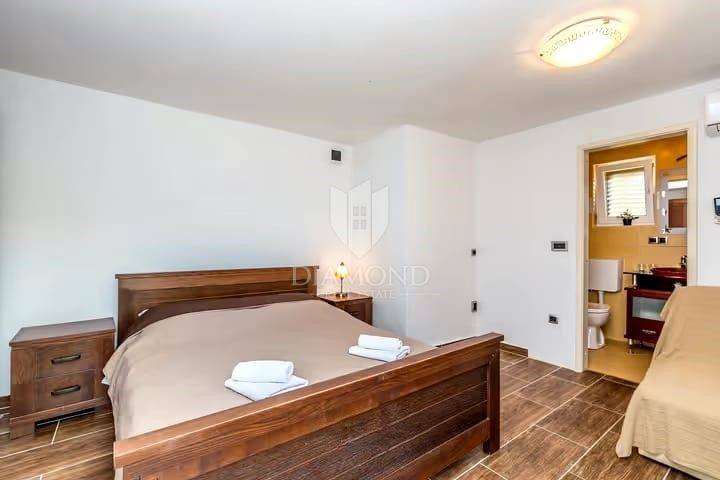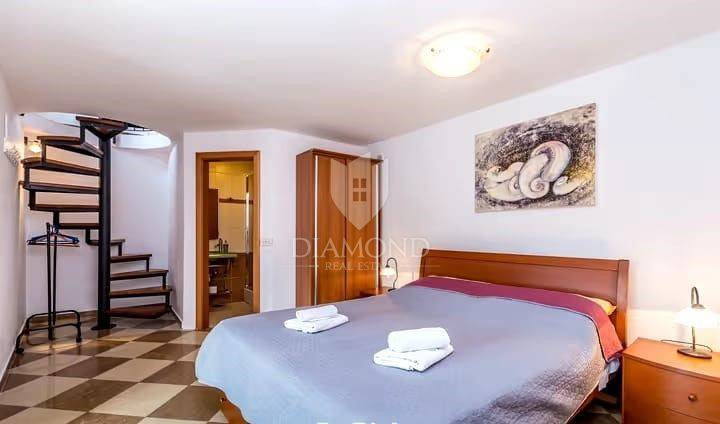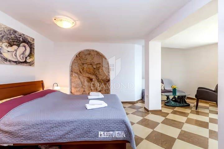 We present a unique house on the island of Krk, with a surface area of 100 square meters, situated right on the seafront. This one-of-a-kind property, merged with the Krk rock, offers an unforgettable experience of the maritime environment. Categorized with four stars, it provides complete comfort and is perfect for a relaxing holiday. The house spans several levels and consists of a kitchen, living room, three bedrooms, and three bathrooms.