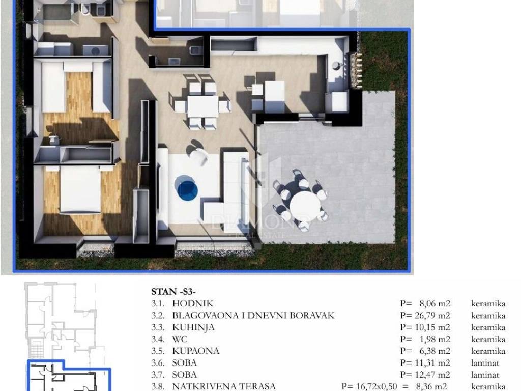 For sale: a modern 85.50 m² apartment in a newly built urban villa in Labin, located in a quiet residential area, just a few minutes’ walk from the Labin city centre and all essential amenities.