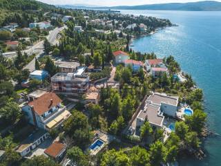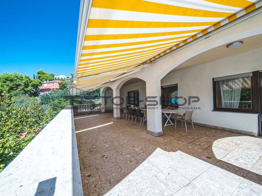 Kuća ima predivnu okućnicu te tri velike terase s panoramskim pogledom na more, roštilj, dvije garaže i vlastiti prilaz moru ( svega 40-ak metara od mora ).