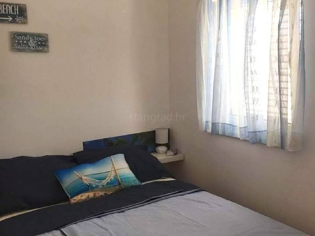 The apartment is situated in a high attic of a residential building with an elevator, on the third floor, with a total area of 30 m². It is functionally organized as a small but very practical one-bedroom apartment with a living room. It consists of an entrance area, bathroom, kitchen, living room with dining area, bedroom, and a loggia offering a beautiful sea view. The interior is well maintained and equipped with quality technical appliances and functional furniture. Public parking is available near the building.