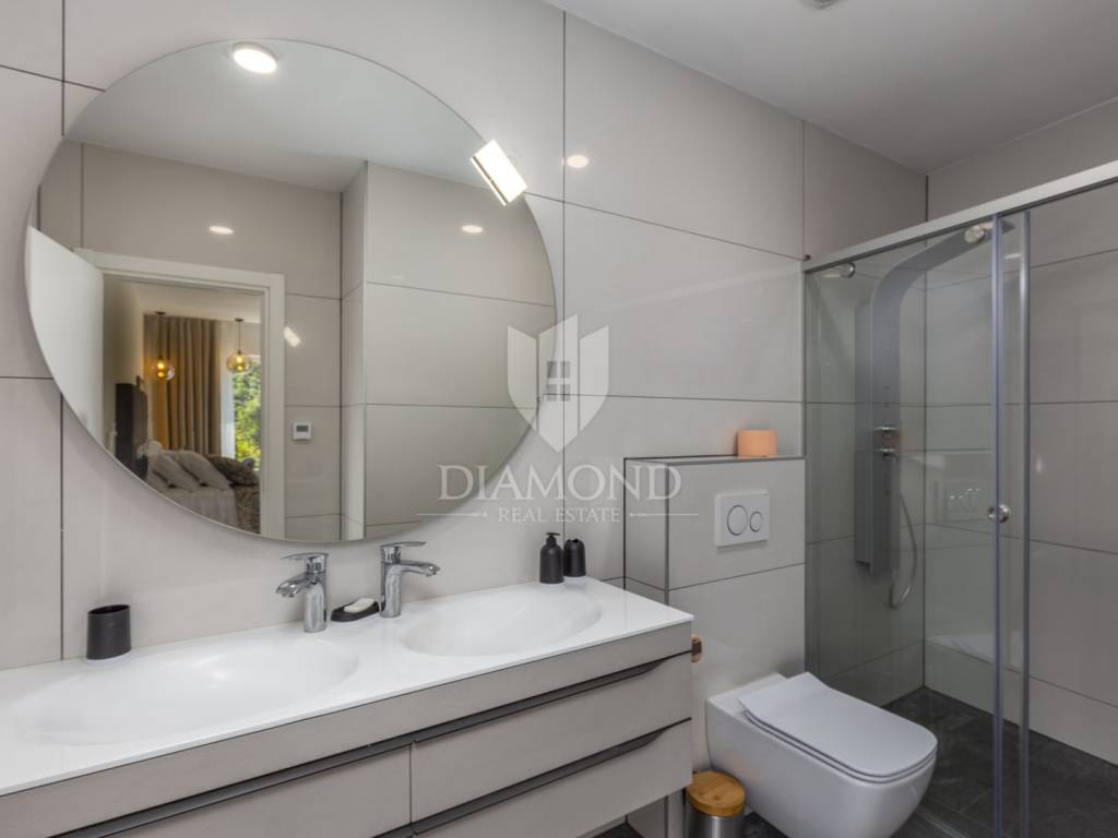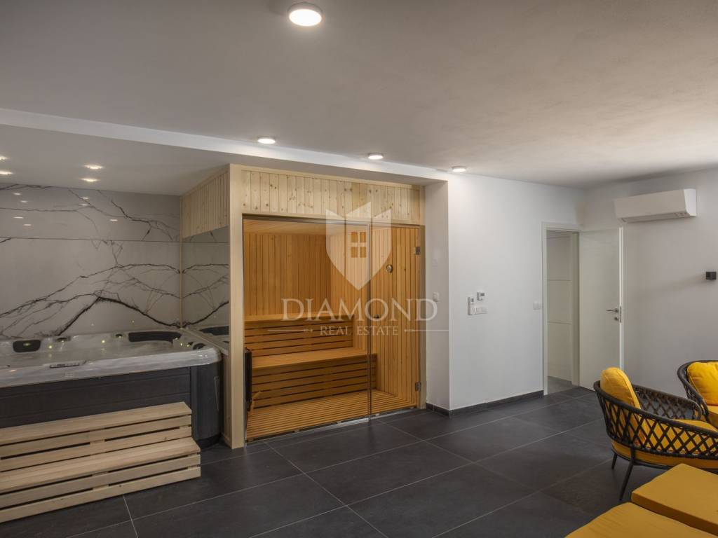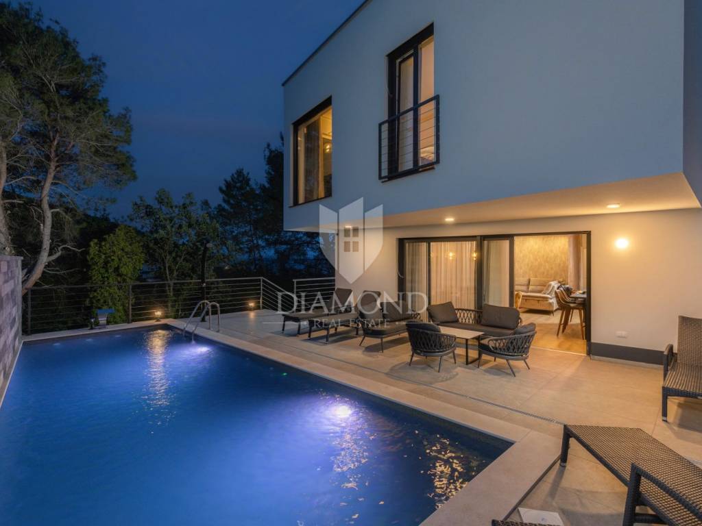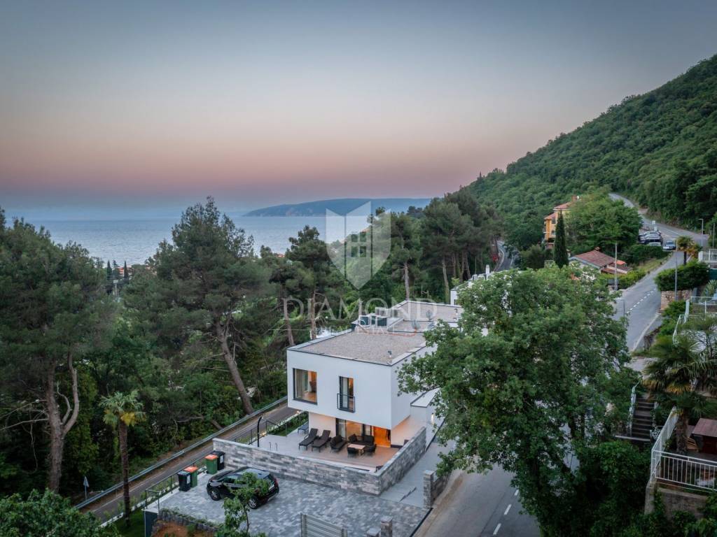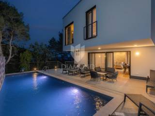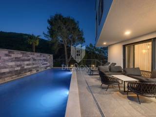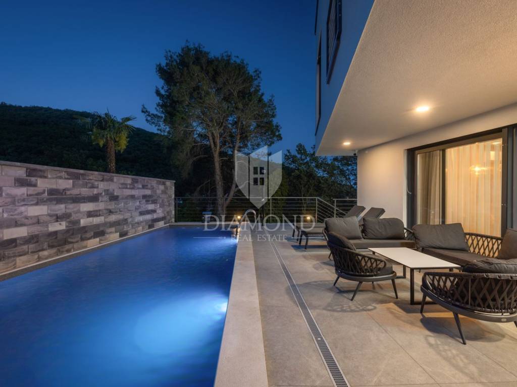 In an attractive location in Mošćenička Draga, just 400 meters from the beautiful beach, there is a modern villa of 250 m2, which represents the perfect combination of luxury, comfort and privacy. This elegantly designed property offers a spacious and bright interior, ideal for enjoying supreme comfort throughout the year. The villa consists of three spacious and tastefully decorated bedrooms that provide a peaceful and comfortable atmosphere, perfect for relaxation. Every corner of the interior has been carefully designed to meet the high standards of modern life, and the open concept of the living room and kitchen further emphasizes the feeling of spaciousness and light. Glass walls connect the interior space with the outdoor terrace, creating a perfect connection with nature and allowing you to enjoy the beautiful view of the Mediterranean environment. Special emphasis is placed on relaxation and recreation facilities. The villa includes a luxurious wellness area with a relaxation area, perfect for escaping everyday stress, while the outdoor pool with a sun terrace provides an ideal place to enjoy warm summer days. Surrounded by a carefully landscaped garden, the property offers a sense of privacy and tranquility, while being located in close proximity to all necessary amenities, including restaurants, shops and the seaside promenade. This villa is the perfect solution for those looking for a luxurious family residence, a weekend getaway to the coast or an investment in one of the most beautiful destinations on the Adriatic.