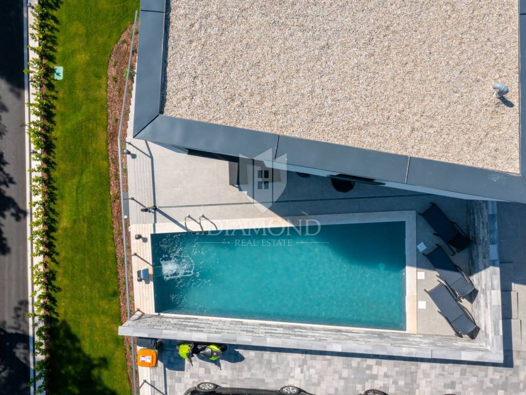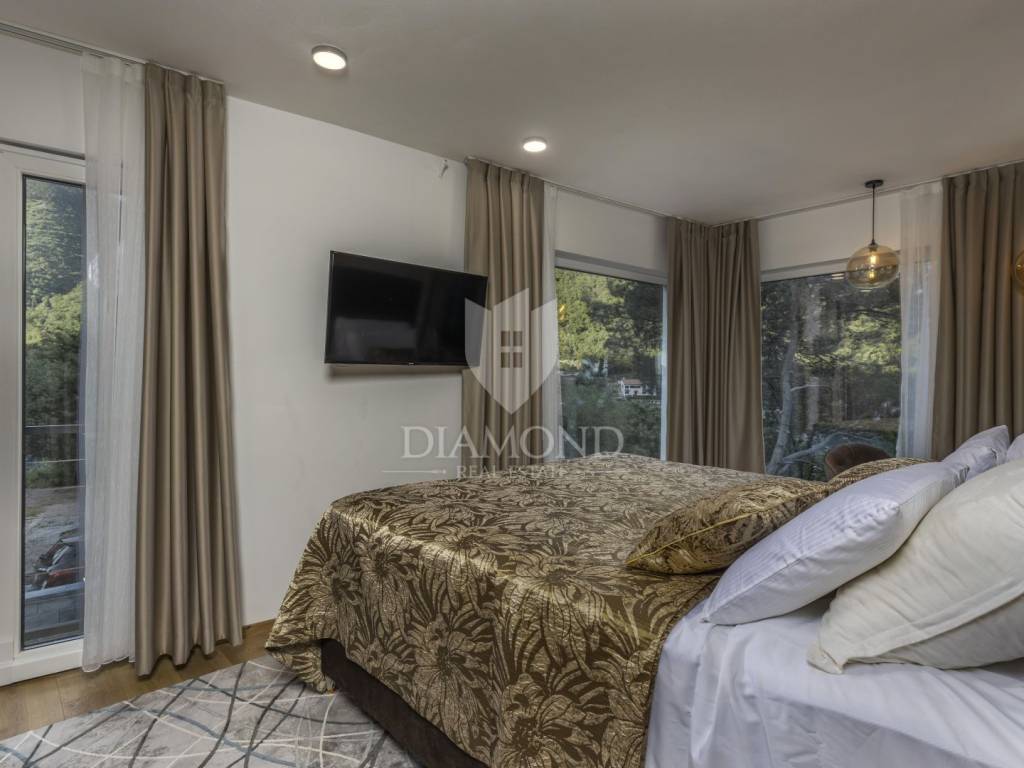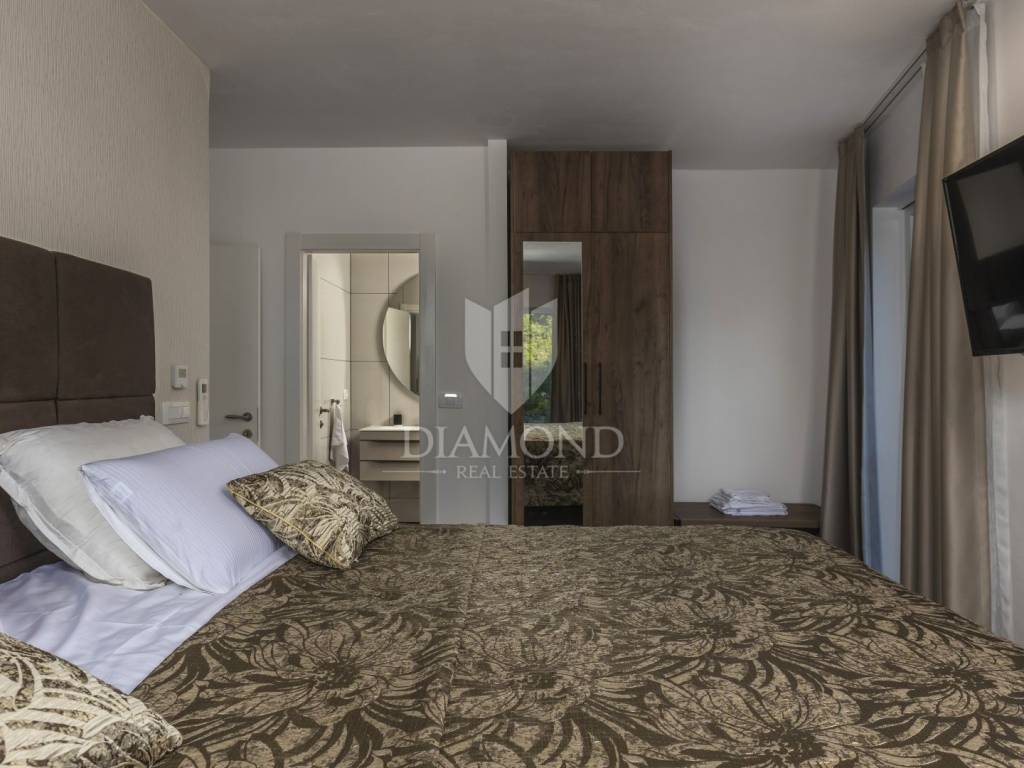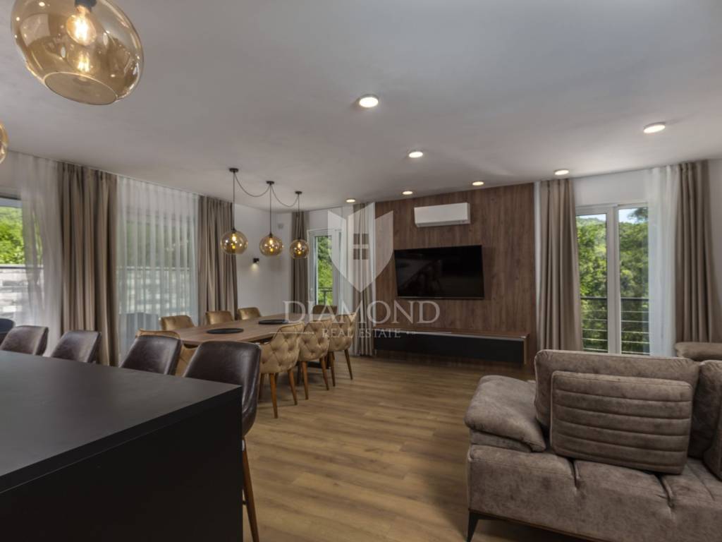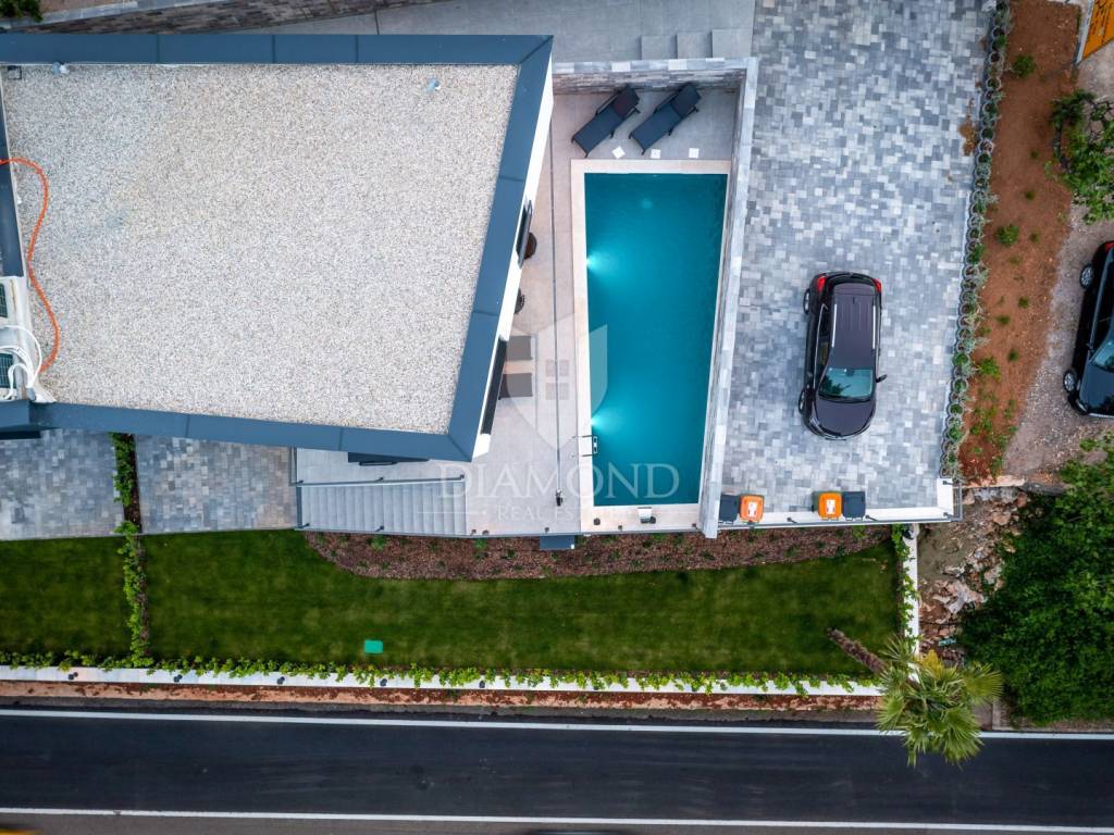 In an attractive location in Mošćenička Draga, just 400 meters from the beautiful beach, there is a modern villa of 250 m2, which represents the perfect combination of luxury, comfort and privacy. This elegantly designed property offers a spacious and bright interior, ideal for enjoying supreme comfort throughout the year. The villa consists of three spacious and tastefully decorated bedrooms that provide a peaceful and comfortable atmosphere, perfect for relaxation. Every corner of the interior has been carefully designed to meet the high standards of modern life, and the open concept of the living room and kitchen further emphasizes the feeling of spaciousness and light. Glass walls connect the interior space with the outdoor terrace, creating a perfect connection with nature and allowing you to enjoy the beautiful view of the Mediterranean environment. Special emphasis is placed on relaxation and recreation facilities. The villa includes a luxurious wellness area with a relaxation area, perfect for escaping everyday stress, while the outdoor pool with a sun terrace provides an ideal place to enjoy warm summer days. Surrounded by a carefully landscaped garden, the property offers a sense of privacy and tranquility, while being located in close proximity to all necessary amenities, including restaurants, shops and the seaside promenade. This villa is the perfect solution for those looking for a luxurious family residence, a weekend getaway to the coast or an investment in one of the most beautiful destinations on the Adriatic.