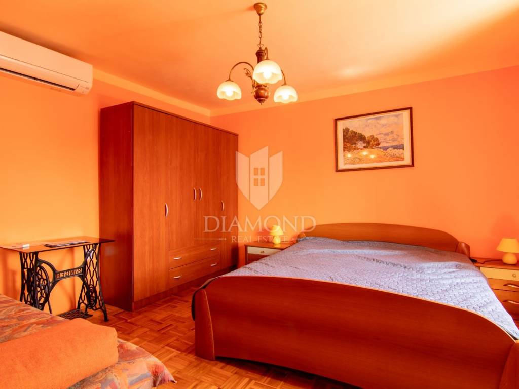 House for sale in Mošćenička Draga, situated in an exceptional location just 500 meters from the beautiful beach. This spacious property of 177 m2 consists of four bedrooms, and additional value is provided by an auxiliary apartment ideal for guests or tourist rental. The house is air-conditioned and equipped with central heating on heating oil, which allows for a pleasant stay throughout the year. The first floor offers a beautiful view of the sea. Next to the house itself there are auxiliary buildings with a total area of 50 m2, including a garage and covered parking, which further increases the functionality and comfort of this property. Ideal for family life or as an investment for tourism, this house combines a quiet location near the sea with a practical layout and quality infrastructure. For all additional information and viewings, please feel free to contact us.