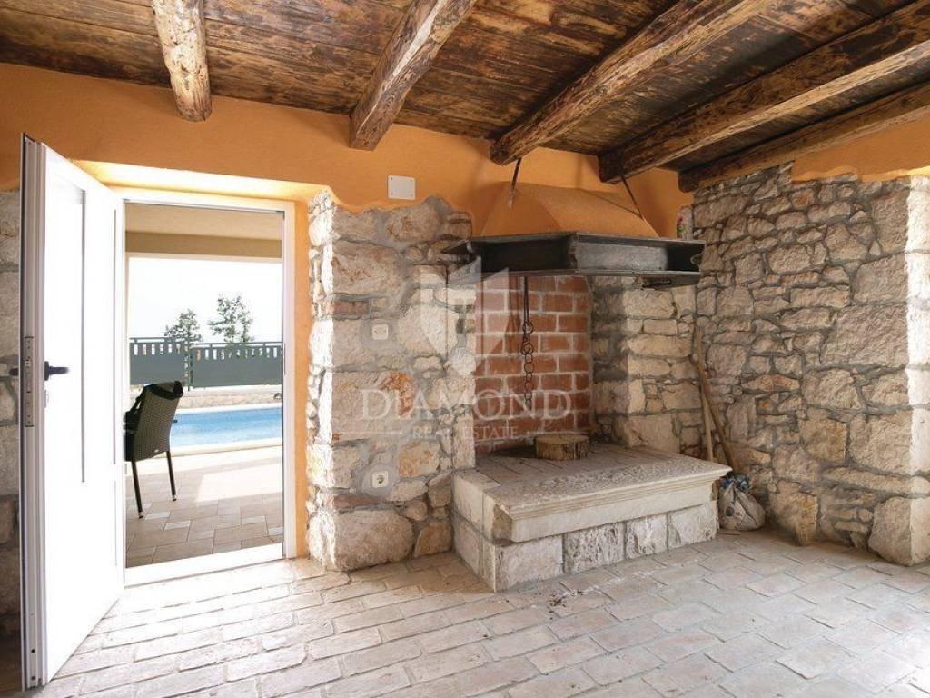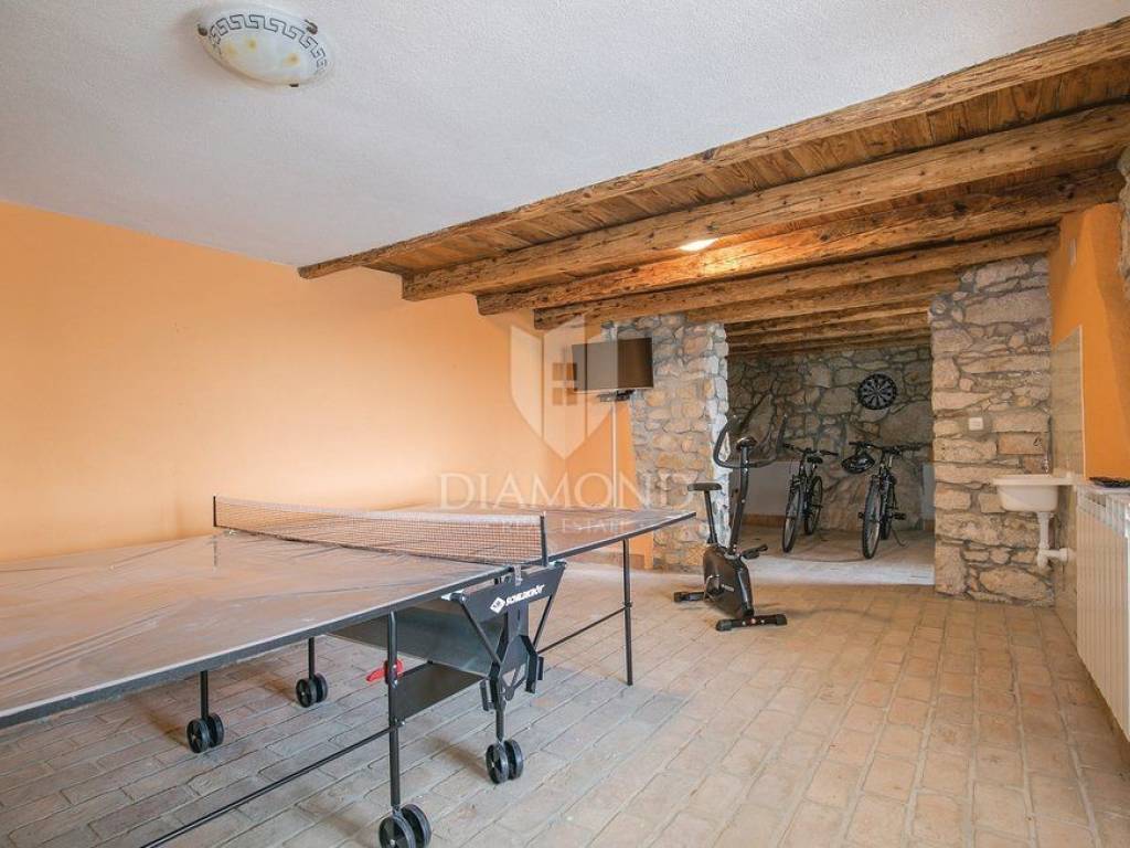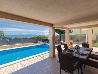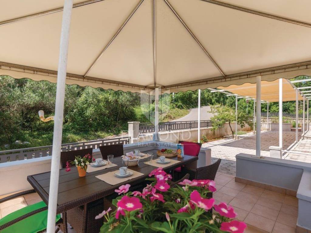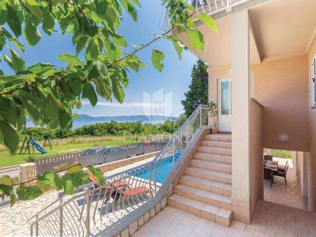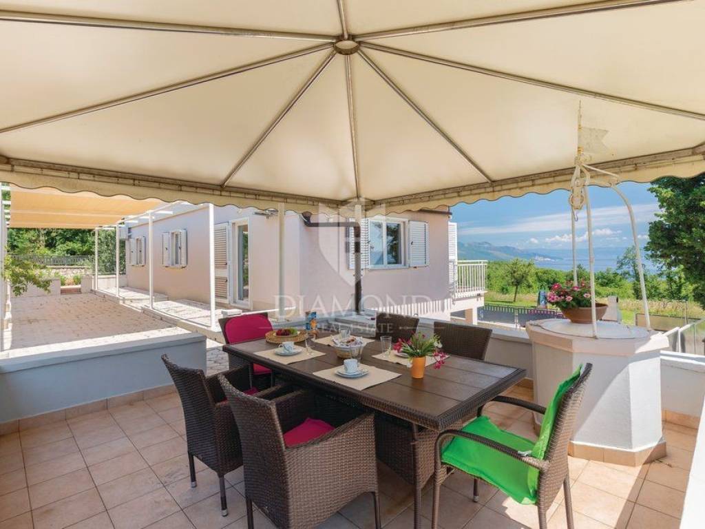 Labin, a holiday house with a view of the sea In the quiet surroundings of Labin, just 500 meters from the sea, there is this enchanting Mediterranean house, providing an ideal haven for relaxation and enjoying the benefits of nature. This house covers an area of 181 m² and consists of a basement, ground floor and first floor, each part offers a special corner for comfort and relaxation. In the basement, there is a tavern with a fireplace and a playroom as a perfect place to gather with family and friends. While the ground floor of the house has a spacious living room with access to the terrace, there is also a dining room and a fully equipped kitchen, one bedroom, a guest toilet and a bathroom. On the first floor of the house there are three bedrooms together with a bathroom, in addition there is another terrace with a beautiful view of the Kvarner Bay that gives you a feeling of connection with nature. The house is equipped with air conditioners in all bedrooms and living rooms, and is connected to gas central heating, ensuring a pleasant temperature throughout the year. The yard is fenced and well-kept, with beautiful Mediterranean plants that contribute to the atmosphere of peace and tranquility. The old well has been converted into a covered terrace, while there is also a beautiful 28 m² swimming pool with a sun deck, ideal for refreshing yourself on hot summer days. This Mediterranean beauty offers everything you need for a luxurious and comfortable life, whether you use it as your own oasis or as a tourist rental investment. For more information and to arrange a viewing, please contact us.
