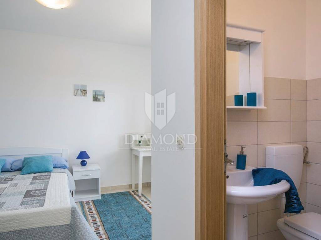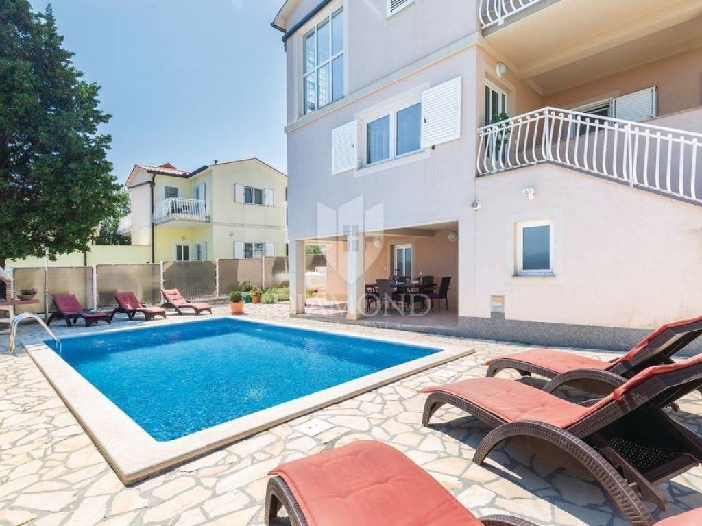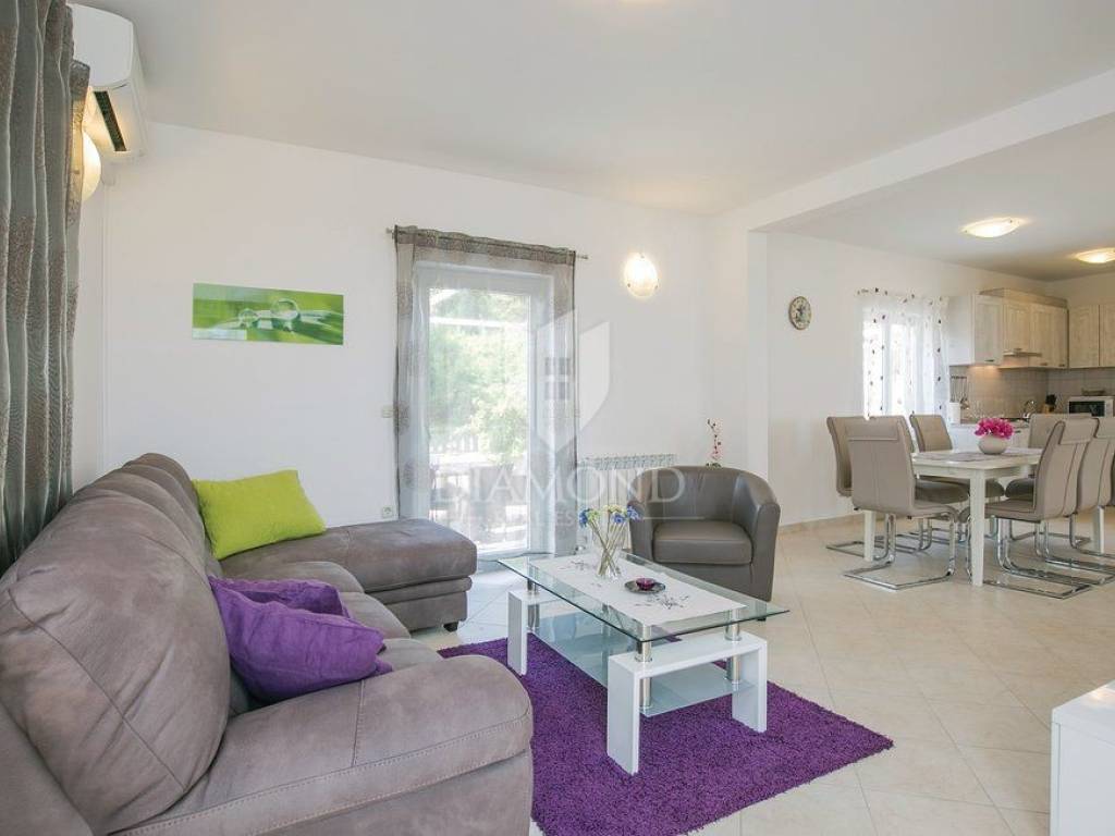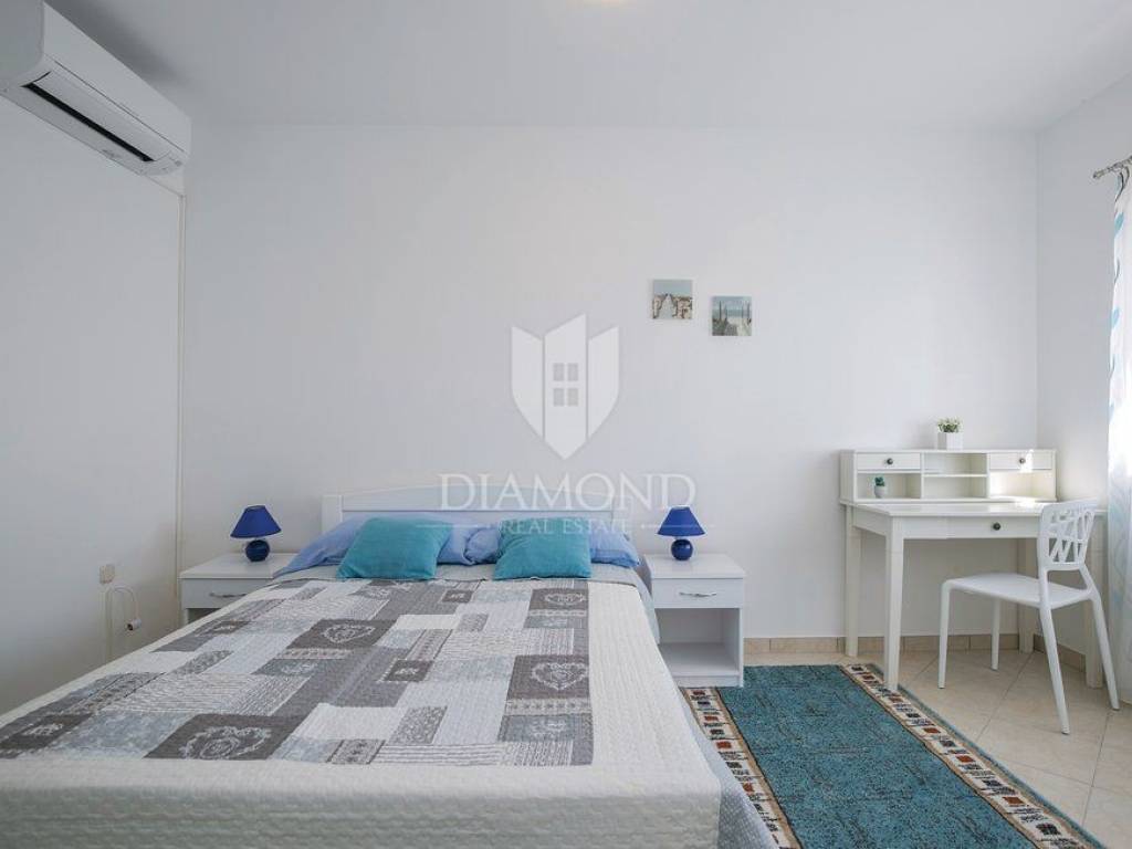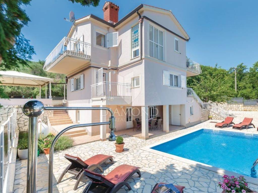 Labin, a holiday house with a view of the sea In the quiet surroundings of Labin, just 500 meters from the sea, there is this enchanting Mediterranean house, providing an ideal haven for relaxation and enjoying the benefits of nature. This house covers an area of 181 m² and consists of a basement, ground floor and first floor, each part offers a special corner for comfort and relaxation. In the basement, there is a tavern with a fireplace and a playroom as a perfect place to gather with family and friends. While the ground floor of the house has a spacious living room with access to the terrace, there is also a dining room and a fully equipped kitchen, one bedroom, a guest toilet and a bathroom. On the first floor of the house there are three bedrooms together with a bathroom, in addition there is another terrace with a beautiful view of the Kvarner Bay that gives you a feeling of connection with nature. The house is equipped with air conditioners in all bedrooms and living rooms, and is connected to gas central heating, ensuring a pleasant temperature throughout the year. The yard is fenced and well-kept, with beautiful Mediterranean plants that contribute to the atmosphere of peace and tranquility. The old well has been converted into a covered terrace, while there is also a beautiful 28 m² swimming pool with a sun deck, ideal for refreshing yourself on hot summer days. This Mediterranean beauty offers everything you need for a luxurious and comfortable life, whether you use it as your own oasis or as a tourist rental investment. For more information and to arrange a viewing, please contact us.