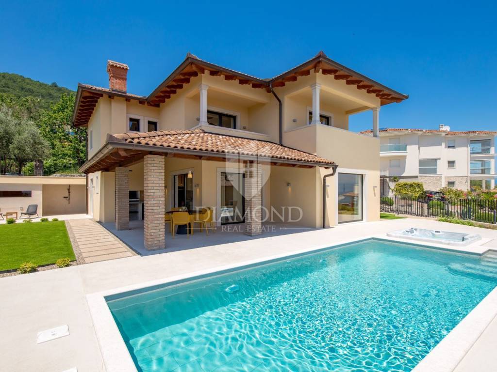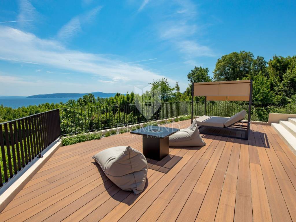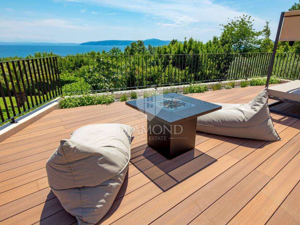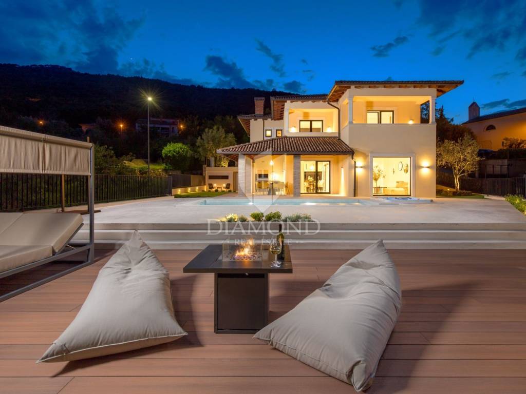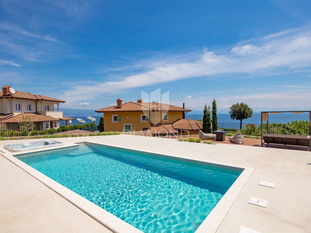 The main advantages of this villa include exclusive luxury amenities such as the pool, jacuzzi, and sauna, stunning panoramic sea views from nearly every part of the house, and modern, carefully selected interior equipment. Each bedroom has its own bathroom, adding to the sense of luxury and privacy. The spacious 700 m² garden provides ample space for outdoor enjoyment and complete tranquility.
