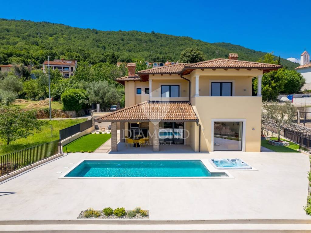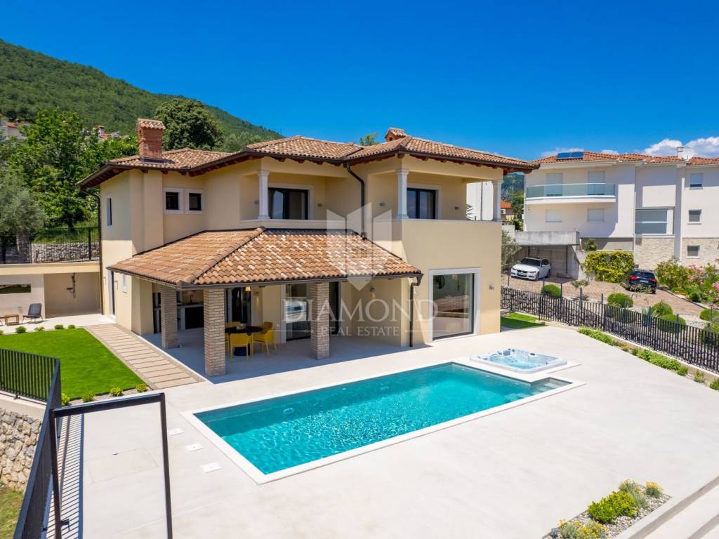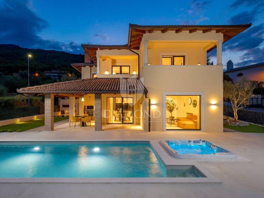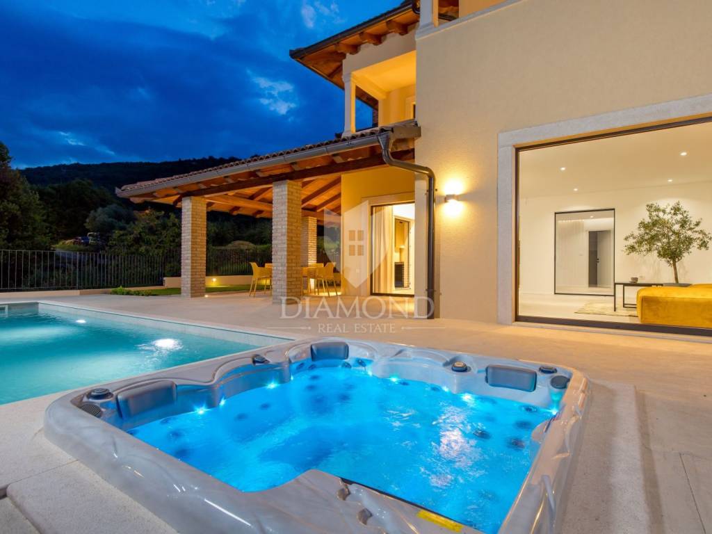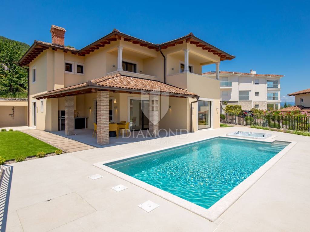 The main advantages of this villa include exclusive luxury amenities such as the pool, jacuzzi, and sauna, stunning panoramic sea views from nearly every part of the house, and modern, carefully selected interior equipment. Each bedroom has its own bathroom, adding to the sense of luxury and privacy. The spacious 700 m² garden provides ample space for outdoor enjoyment and complete tranquility.