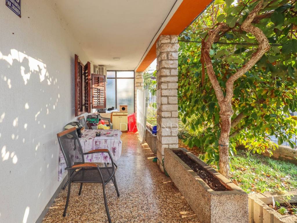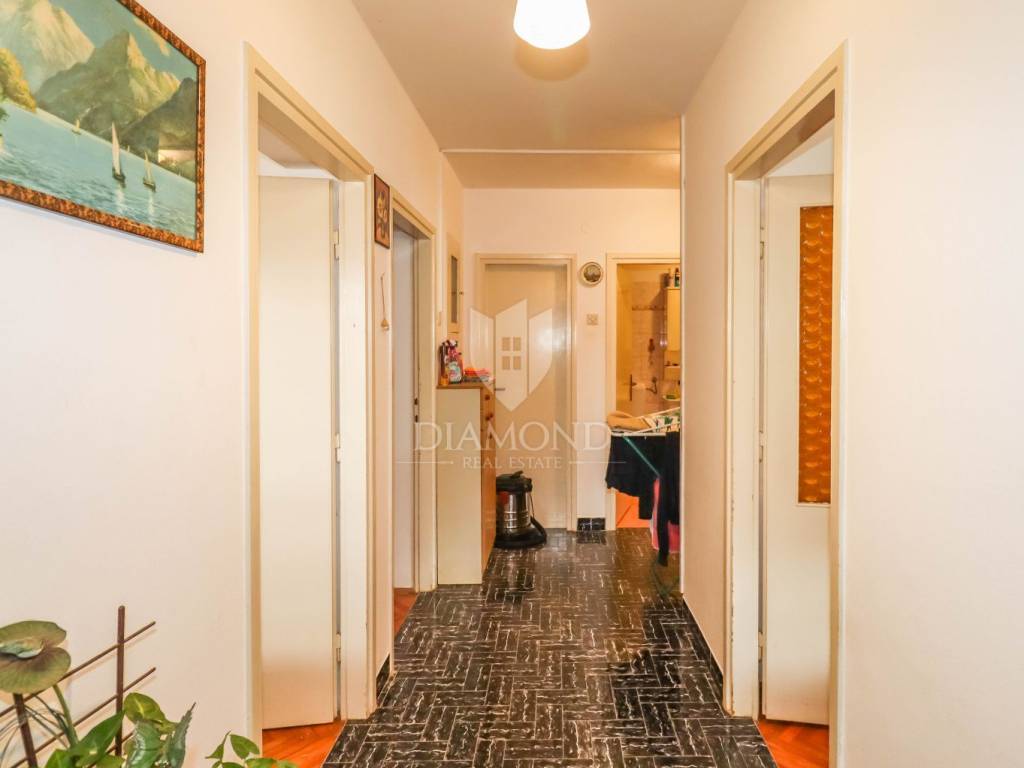 For sale is a spacious 107 m² apartment located in one of the most sought-after and peaceful family neighborhoods in Rovinj, just a short distance from the city center. The apartment is situated on the ground floor of a larger family house and offers two bedrooms, a bathroom, a separate toilet, an additional smaller bathroom, a spacious living room with kitchen and dining area, two terraces, and a large private garden—a rare feature in Rovinj. Additionally, the apartment includes a parking space in front of the house.