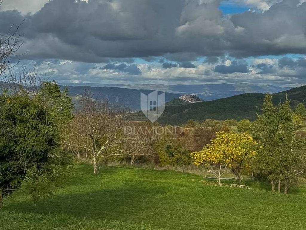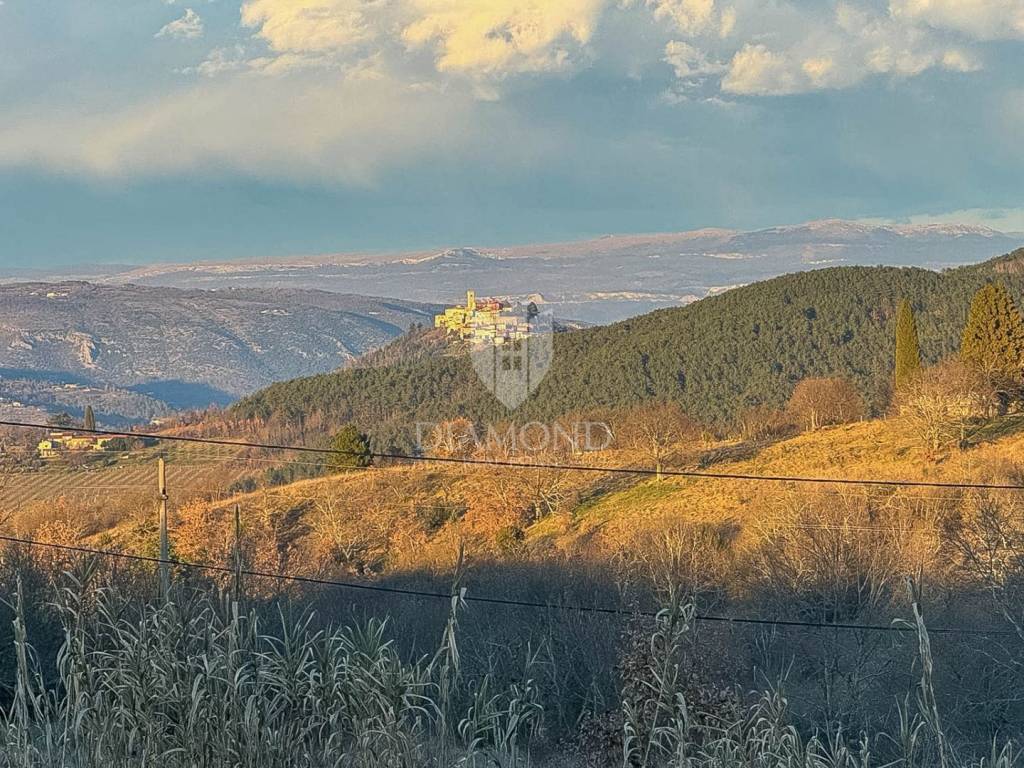 On the very edge of the construction zone, on an elegant terraced hill with a captivating panoramic view of the surroundings and the far-known Motovun, there is this special building land that combines a prestigious location, peace and authentic Istrian atmosphere. It has a regular shape, with infrastructure nearby, and the subdivision and formation of an access road are in progress. The plot can be reached by an asphalt road, just a few minutes' drive from the Istrian motorway, which provides exceptional connectivity. In the immediate vicinity there are famous wineries, authentic Istrian taverns and numerous cycling routes, while Motovun and Višnjan are only ten kilometers away.