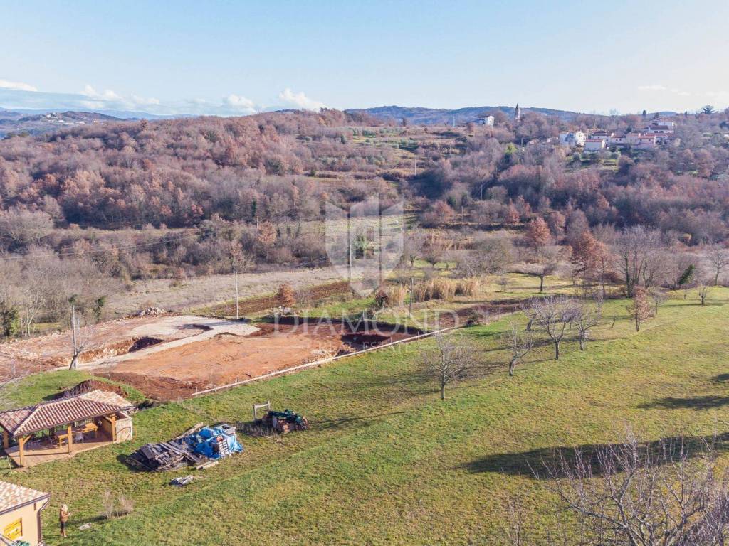 On the very edge of the construction zone, on an elegant terraced hill with a captivating panoramic view of the surroundings and the far-known Motovun, there is this special building land that combines a prestigious location, peace and authentic Istrian atmosphere. It has a regular shape, with infrastructure nearby, and the subdivision and formation of an access road are in progress. The plot can be reached by an asphalt road, just a few minutes' drive from the Istrian motorway, which provides exceptional connectivity. In the immediate vicinity there are famous wineries, authentic Istrian taverns and numerous cycling routes, while Motovun and Višnjan are only ten kilometers away. This land represents an ideal opportunity for building a luxury villa or exclusive holiday home, offering rarely combined privacy, elegance and natural charm of Istria.