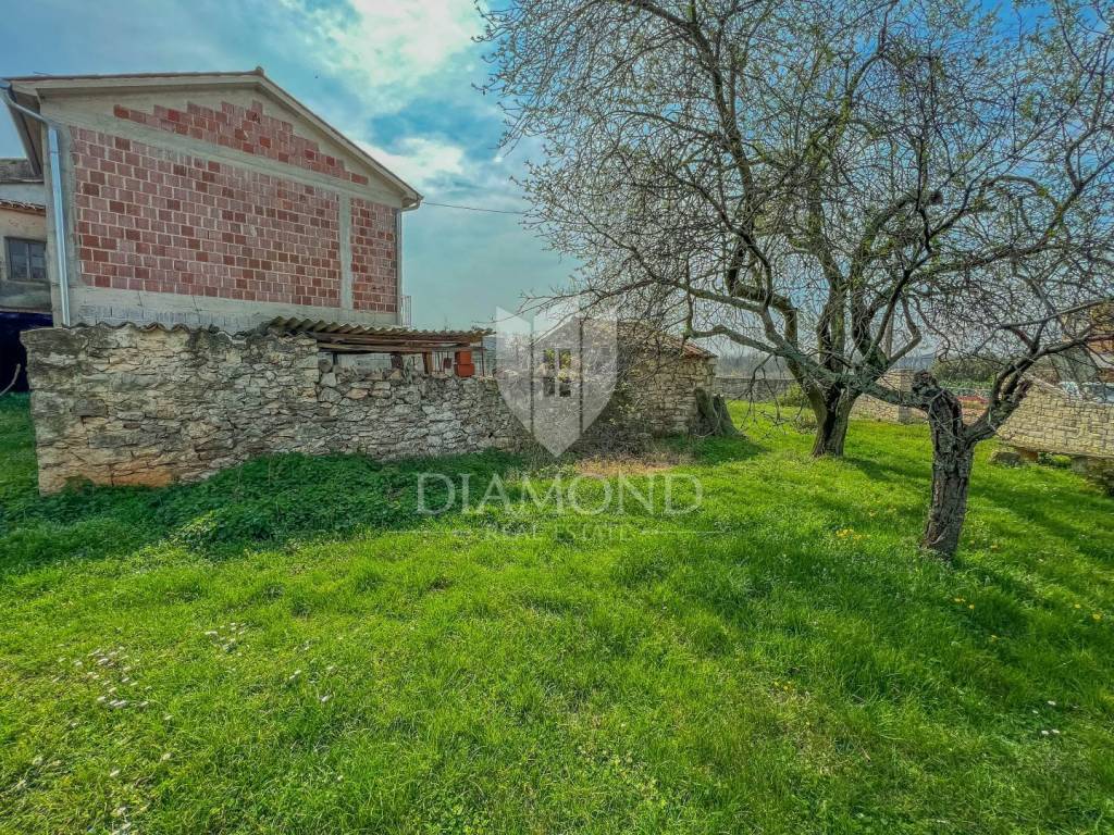It is a semi-detached traditional Istrian house with an area of 150 m2. The house extends over the ground floor, first floor and attic. There is a canteen and a garage on the ground floor, while the living area is on the first floor. From the first floor of the house there is an open view of nature and the sea. The house requires complete adaptation.