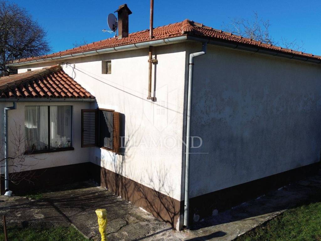 We are selling a cozy and beautiful house in a small Istrian village located between Pula and Barban. The house is located on a flat and fully fenced plot of 1713 square meters. It is surrounded by greenery and trees and a landscaped garden where you can plant anything you want. The house itself is a single-storey house, classically built, with new PVC joinery. The house has 2 bedrooms on one side, and a living room, dining room, kitchen and bathroom on the other side.