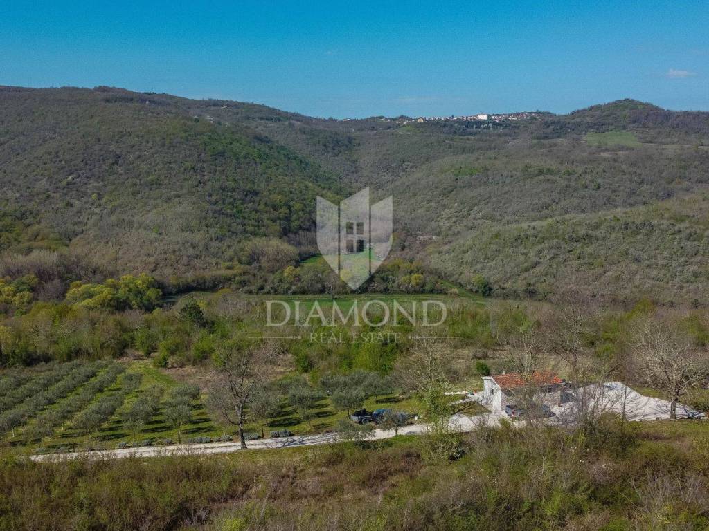 Motovun, surroundings, land with open views – 12,700 m² In a quiet location near Motovun, we offer a spacious plot of land with a total area of 12,700 m², ideal for those looking for privacy, nature and potential for construction. - Building area: approx. 700 m² within the construction zone – residential use - 6 plots in total - Beautiful open view of the green, rolling Istrian hills - Location: just a few minutes drive from magical Motovun - Access: gravel road - Infrastructure: electricity and water about 75 m away (manholes nearby) Perfect for building a family home, holiday villa or investment project in the heart of Istria. The land offers peace, privacy and a natural environment, while being close enough to all the amenities and cultural attractions of Motovun. We are at your disposal for more information and to arrange a tour.