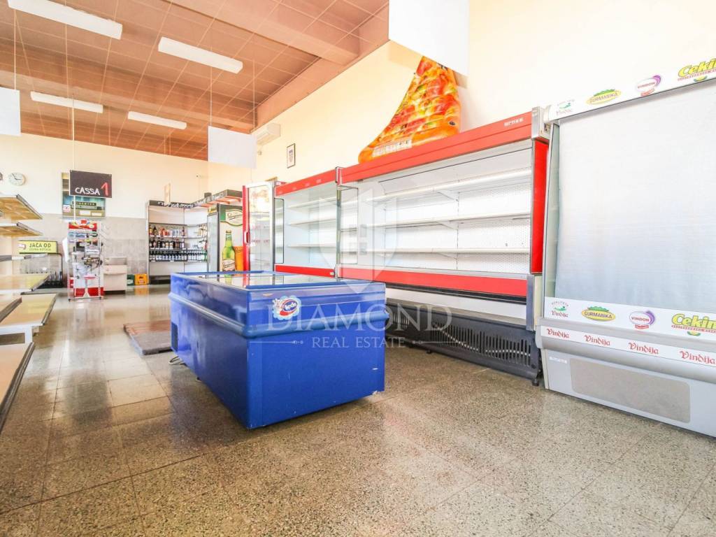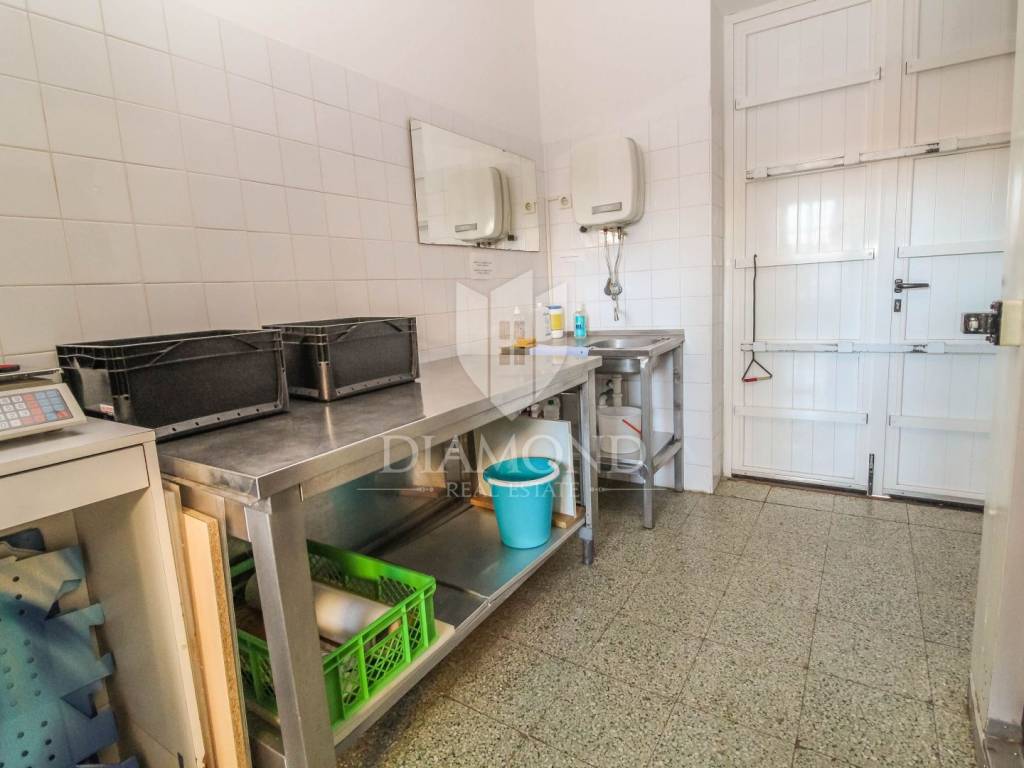 Na atraktivnoj lokaciji u sklopu poslovne zgrade, u ponudi je poslovni prostor za najam 241,29 m2. Lokacija je pred turističkim auto kampom, te stambenom naselju koje je pored lokalnog stanovništva i turistički naseljeno. U blizini se nalazi javni prijevoz, te glavna cesta pa je prometna povezanost odlična. Poslovni prostor se nalazi u prizemlju te ima na korištenje zajednički parking. Prostor je podijeljen na 5 prostorija od kojih je jedna velika dvorana, ured, pripadajući sanitarni čvor, komora-hladnjača te skladište. U pozadini je omogućen pristup kamionima/šleperima za opskrbu.