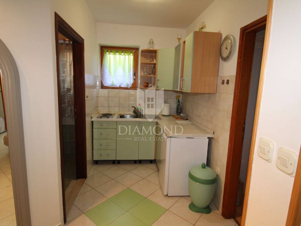 We are selling 2 apartments in Rabac in a great location. The apartments are in a residential building and are located on the ground floor and the first floor, which makes them fantastic for living and renting. The apartment on the ground floor consists of a large open space with a living room and dining room, a bathroom and a kitchen that leads to a 10 square meter terrace and a garden of about 50 square meters, which is very beautiful and full of potential. The apartment on the first floor has a kitchen, one bedroom, a bathroom and a living room and dining room that leads to a balcony of about 8 square meters. Both apartments are in excellent condition and do not require any investment. They are sold furnished and have air conditioning as well as a chimney in which a wood or pellet stove can be installed for heating in winter. The building is newer and one parking space is reserved for the owner of these units. An excellent investment opportunity for both living and renting. You can live in one apartment and rent the other and thus return your investment. Contact us today to view these great properties in Rabac. Enjoy the beaches, the sea and the Mediterranean lifestyle.