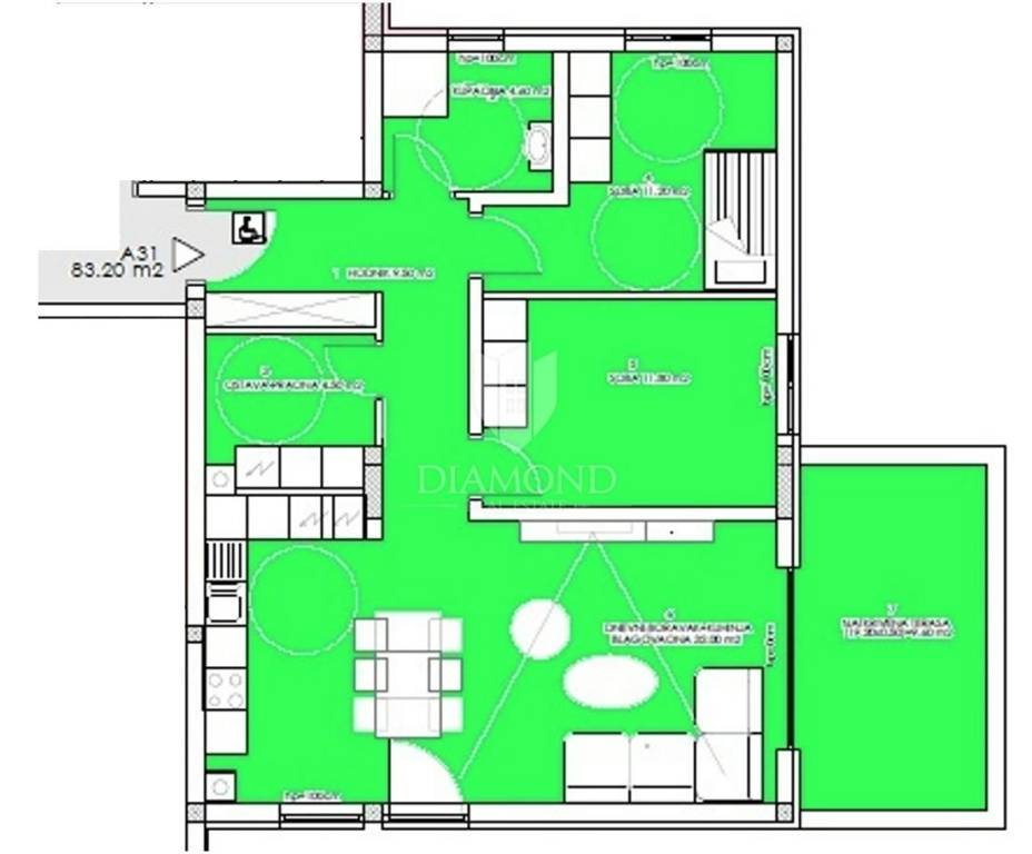 For sale is a modern apartment in a new-build development in Veli Vrh, Pula, in a quiet location surrounded by greenery and forest, only about 4 km from the nearest beaches. It’s an ideal choice for anyone looking for a peaceful home in a natural setting while still being close to the sea and the city center. The building is located in a well-maintained, family-friendly neighborhood, approximately 2 km from Pula’s city center. In the immediate vicinity there are shops, a school, kindergarten, public transport, walking paths, and other amenities needed for comfortable everyday living.