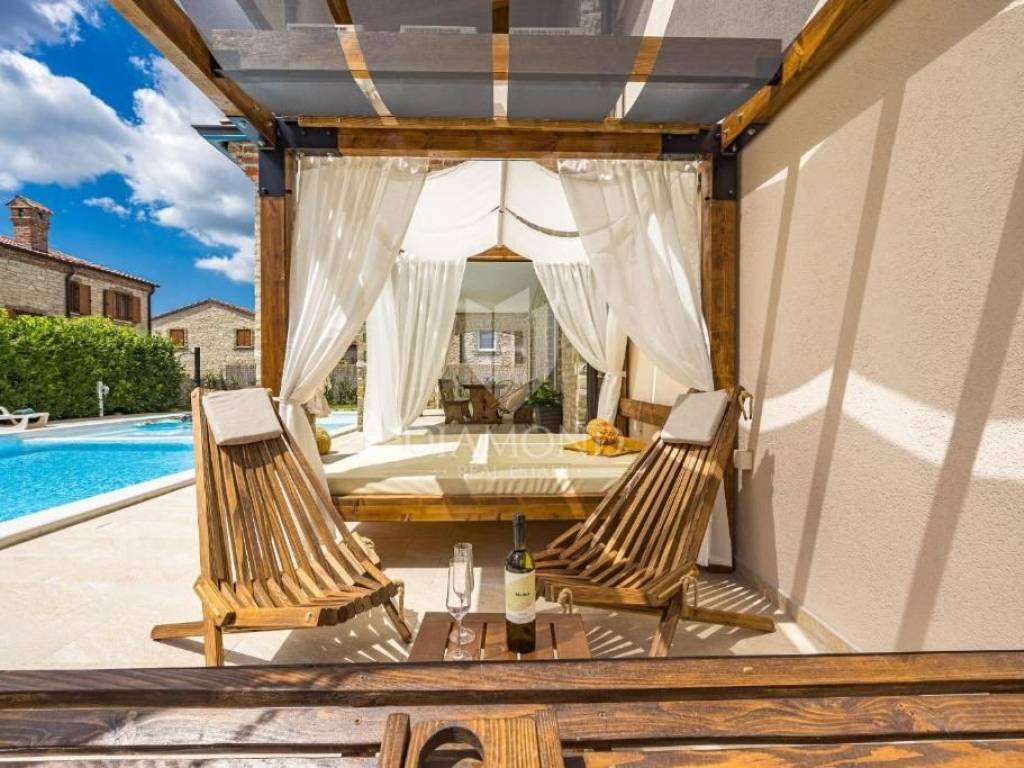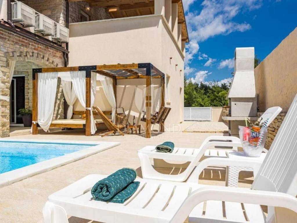 Nestled in the heart of stunning Istrian nature, this elegant villa perfectly combines rustic charm with modern luxury. Surrounded by greenery and away from the hustle and bustle of city life, it offers peace and privacy, while charming towns such as Svetvinčenat, Vodnjan, and Žminj, as well as beautiful coastal destinations like Rovinj and Fažana, are within easy reach.
