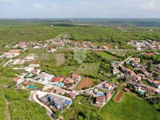The plot is situated at the very edge of a settlement, atop a picturesque hill, providing a stunning, open view of authentic Istrian houses, luxurious holiday villas, and unspoiled nature.