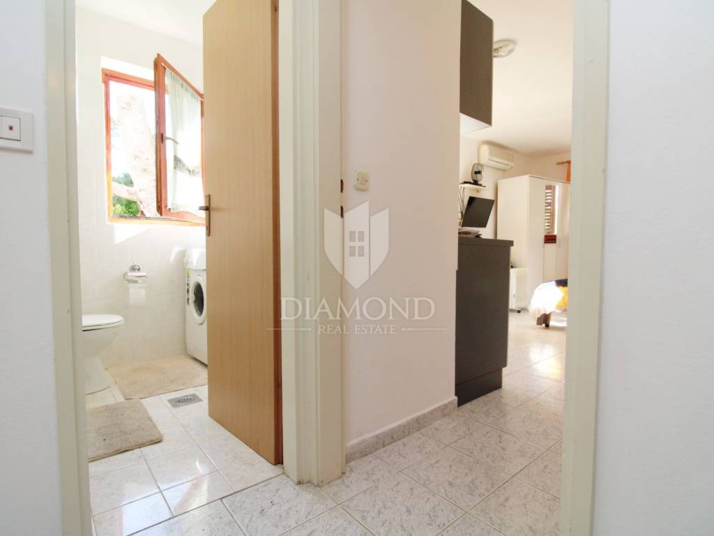 Apartment for sale in Rabac, a few kilometers from the beaches of Rabac. Ideal for a weekend getaway or a rental investment! The apartment consists of a hallway leading to the kitchen connected to the dining room and living room/sleeping area. The bathroom is functionally decorated, and an additional advantage is the chimney that allows the installation of a heating stove, which makes this apartment comfortable throughout the year.