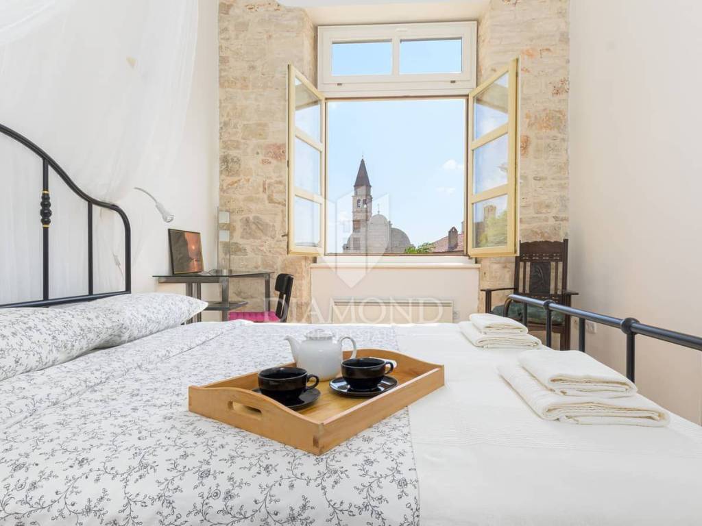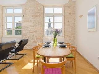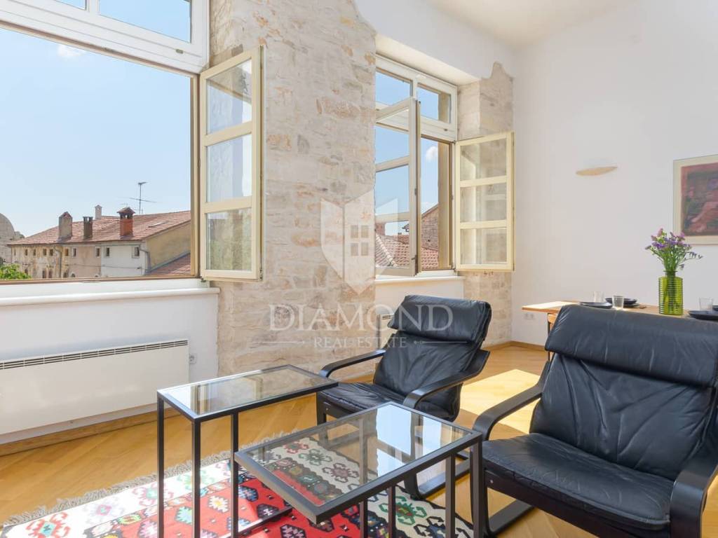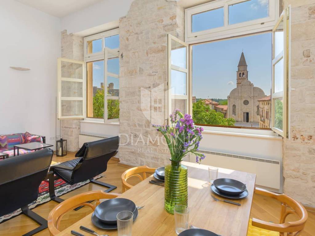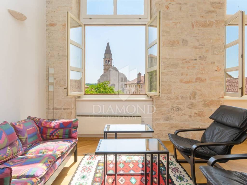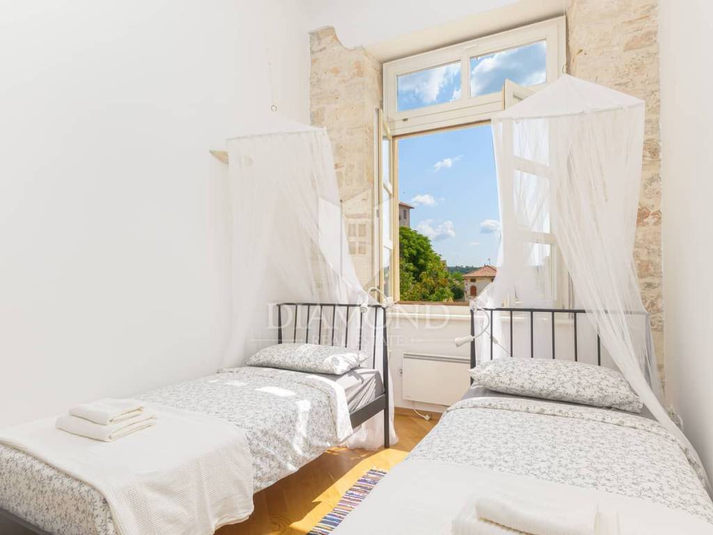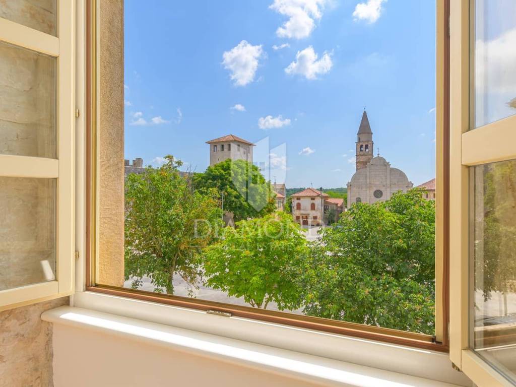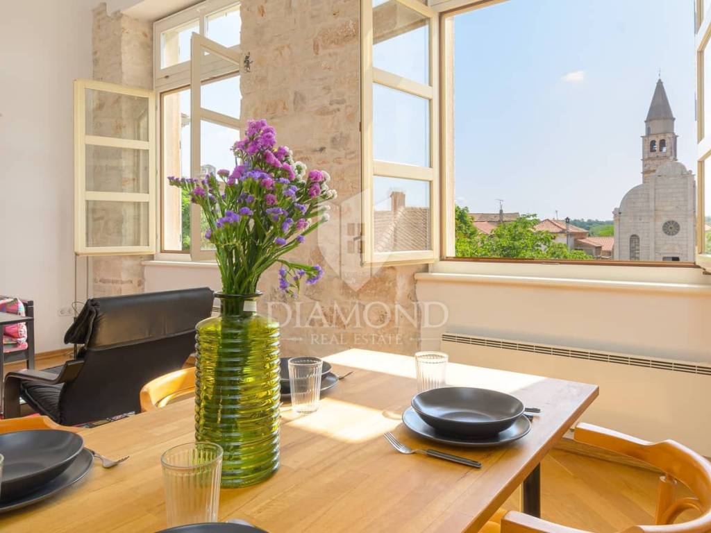 For sale is a true rarity on the market – a spacious and unique apartment of 88 m² on the second floor and a commercial space of 18 m² on the ground floor, both located in the very heart of Svetvinčenat, offering a breathtaking view of one of the most beautiful squares in Istria.
