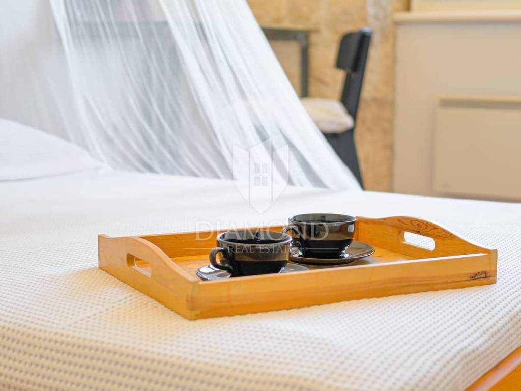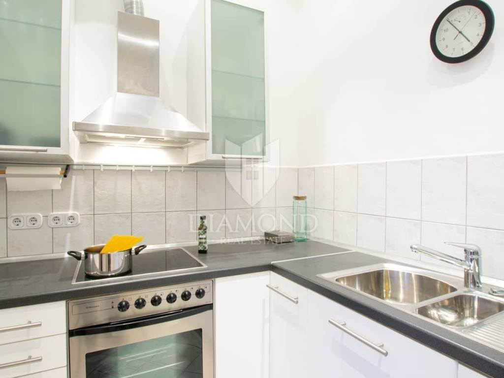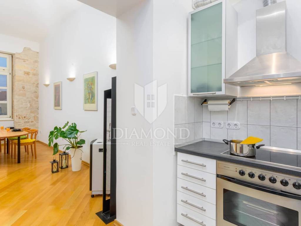 The apartment (87.80 m²) comes with an additional commercial space (18.20 m²) and a large private terrace (14.56 m²) with exclusive access. From the terrace, you can enjoy southern views stretching all the way to the sea and the islets of Dvije sestrice near Veštar – a spectacular sight, especially at sunset.