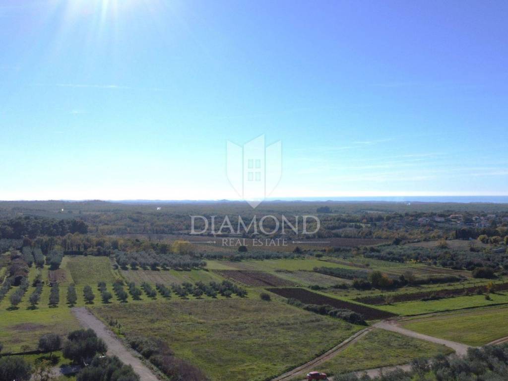 In a peaceful setting near Poreč, an attractive building plot of 560 m² is for sale. Located on an elevated position, it offers a beautiful panoramic view of the sea, surrounding vineyards, and the rolling green hills of Istria.