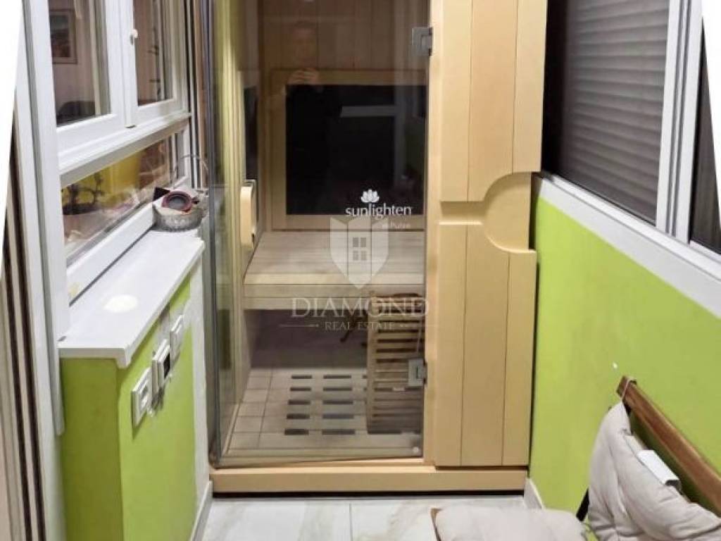 The apartment was completely renovated in 2014, including all installations, and has been regularly maintained and well-equipped since then. It has separate utilities, central heating, underfloor heating and an additional special feature - a sauna located on the balcony. It is being sold fully furnished, which allows for quick and carefree moving in or renting.
