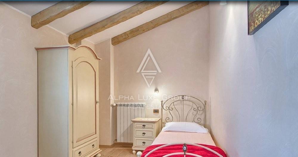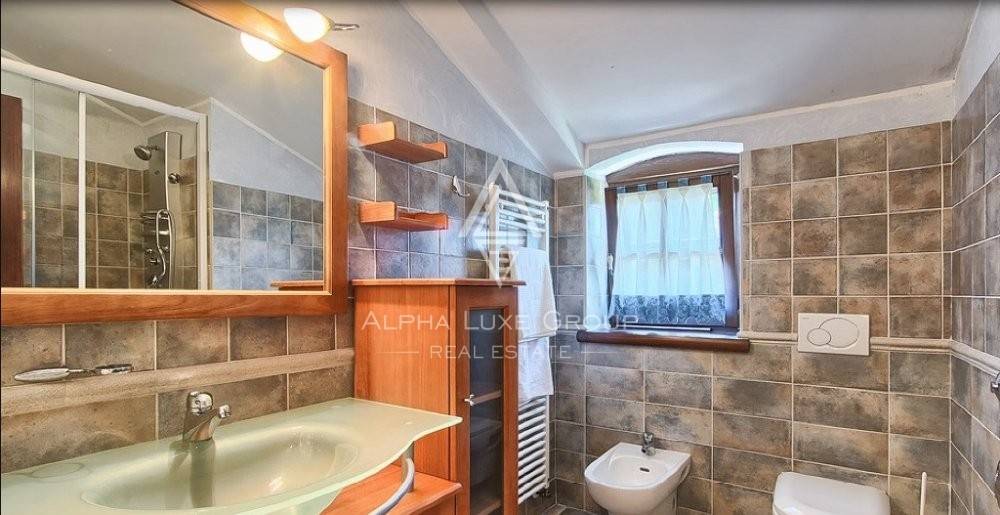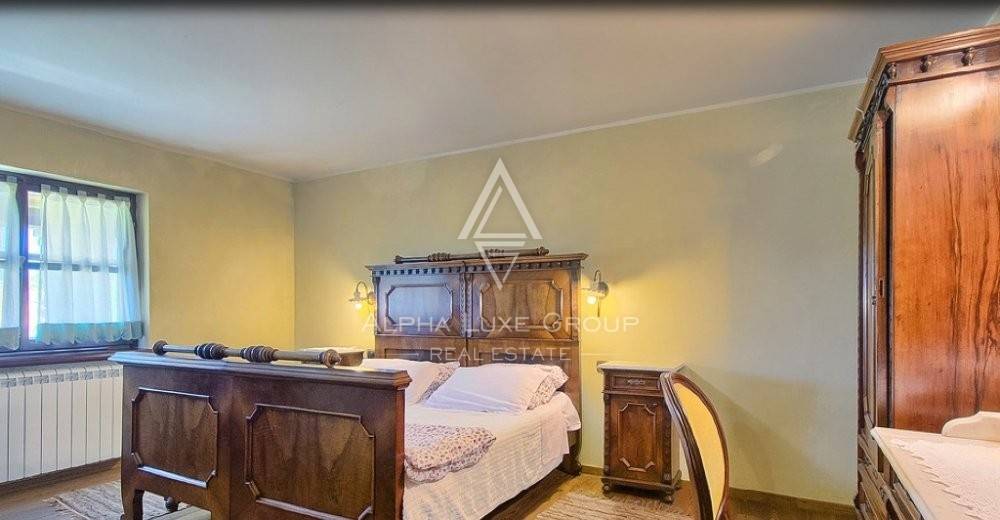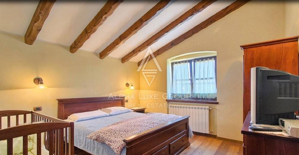 A hydromassage bath and exercise equipment are available on the ground floor in another relaxation area. There is a hallway, four bedrooms, two of which have their bathroom, two bedrooms with a shared bathroom, and a large terrace with a magnificent view of the landscape and the garden on the first level.