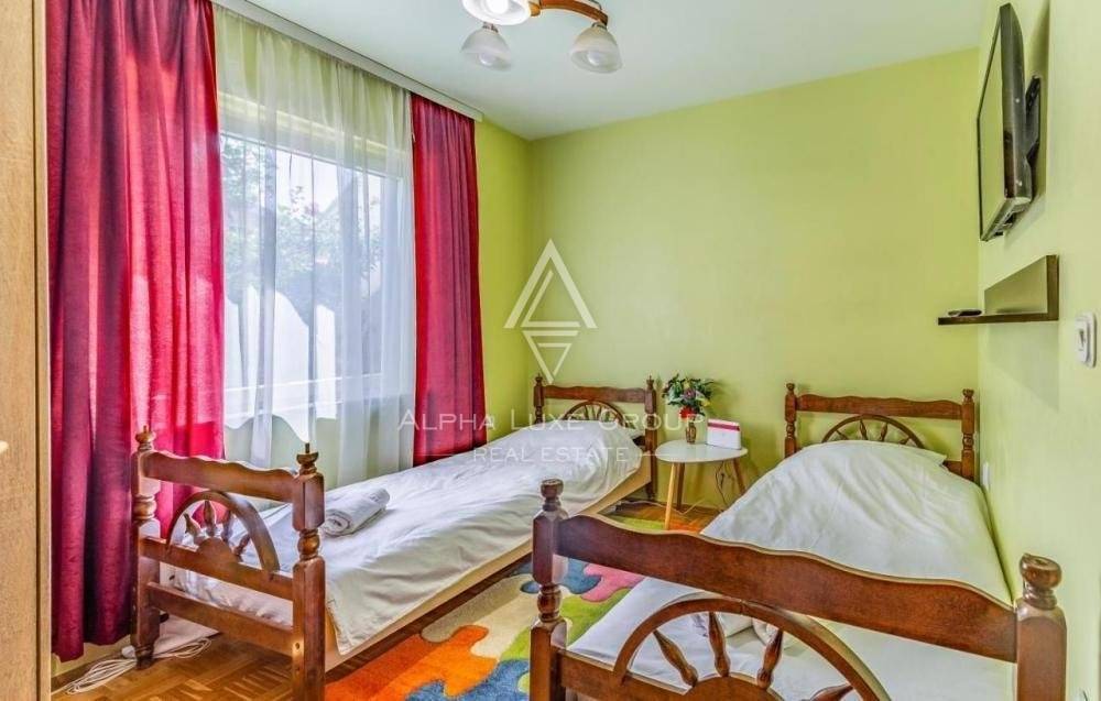 The villa is located near Pula, in a quiet suburb, only 4 kilometers from the beautiful beaches of southern and southwestern Istria. It consists of a central unit of 100 m2 with a swimming pool, two apartments with a separate entrances and parking, a garage, a spacious 1700 m2 yard with over seven parking spaces, and a business hall of 130 m2 with its parking.