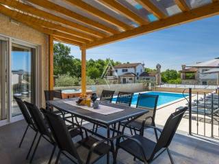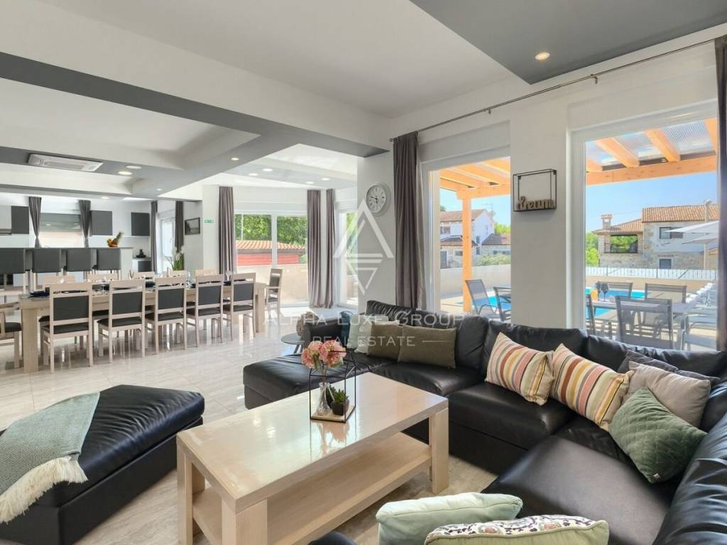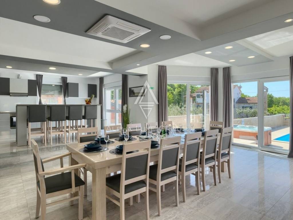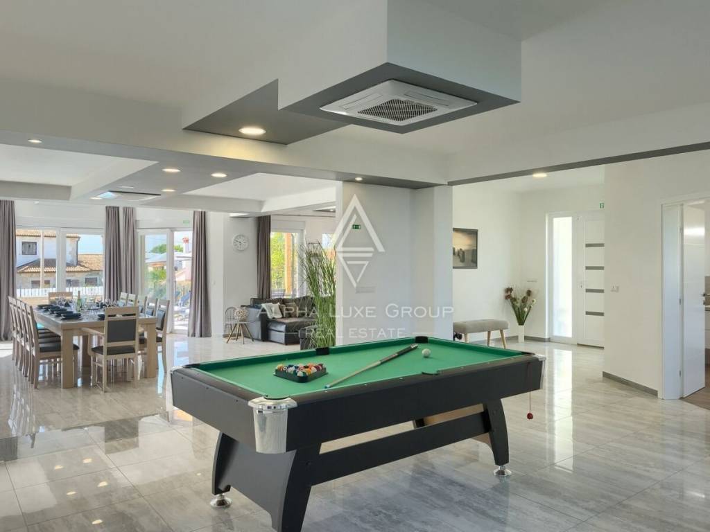On the ground floor, a beautiful terrace with access to the 32-square-meter pool leads directly from the open-plan living room, kitchen, and dining room. An outdoor jacuzzi, billiards, darts, table football, and bicycles are available in front of the House as an additional feature.