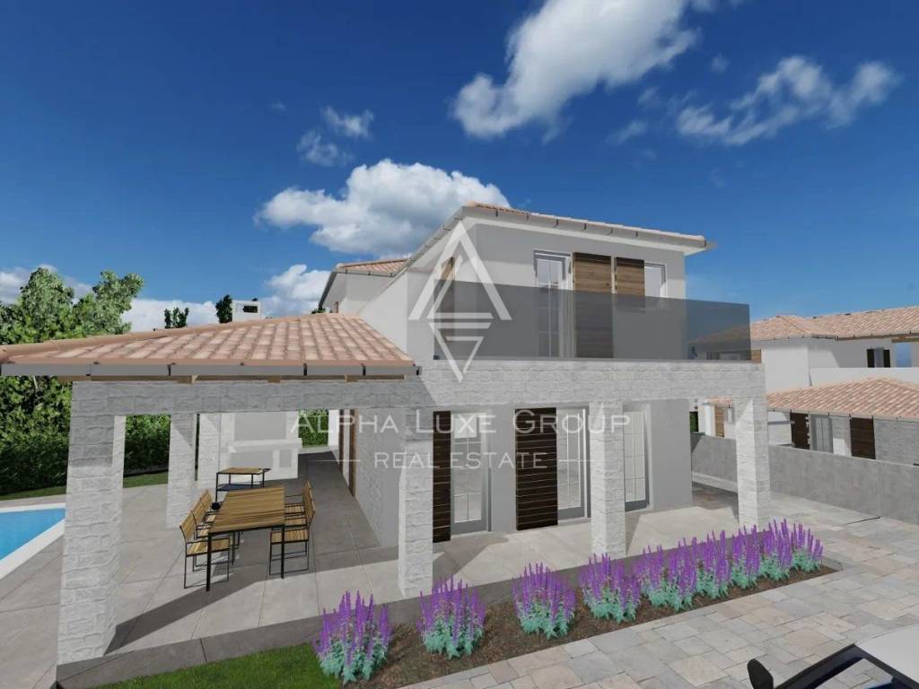 ALPHA LUXE GROUP is selling two beautiful villas in the small, quiet town of Cukrići. Both villas have a living area of 155 m2 and 160 m2 and a fenced yard of 497 m2 with a swimming pool and two parking spaces.