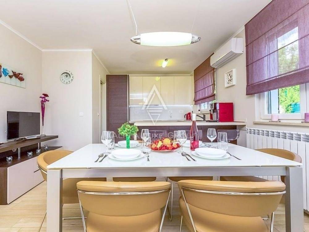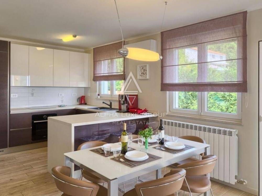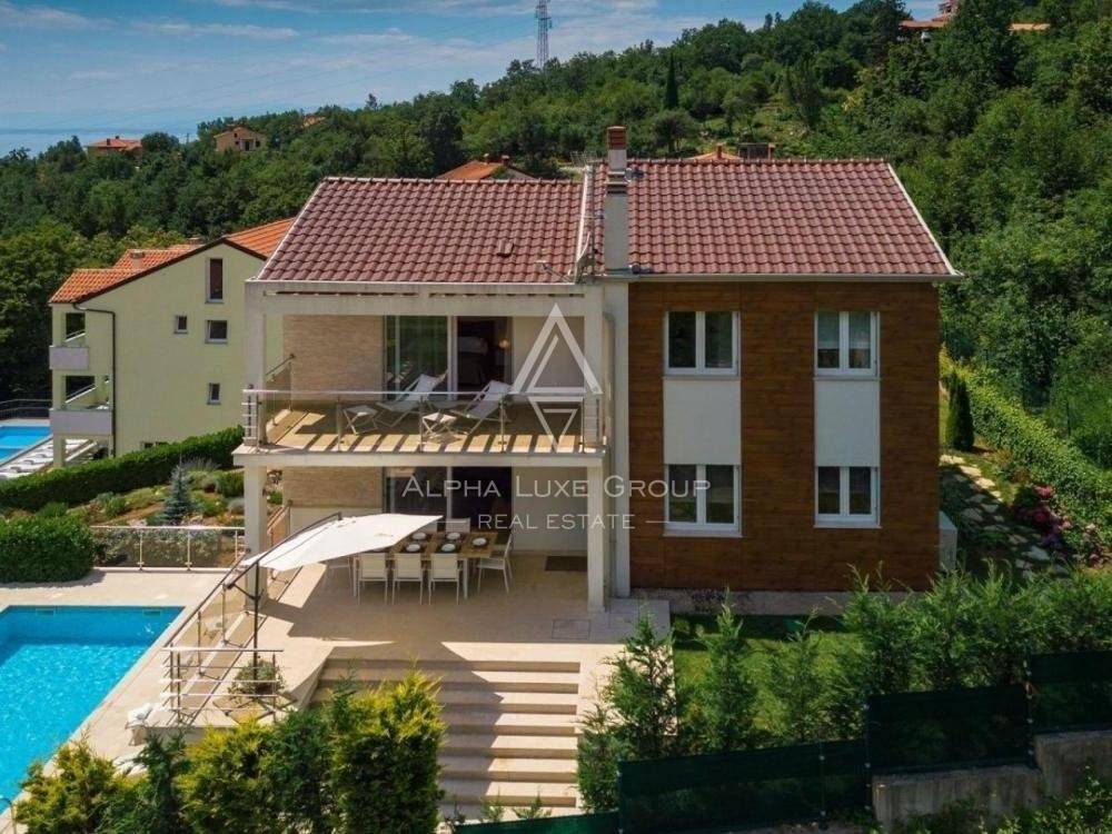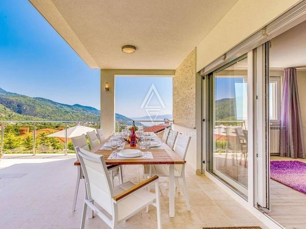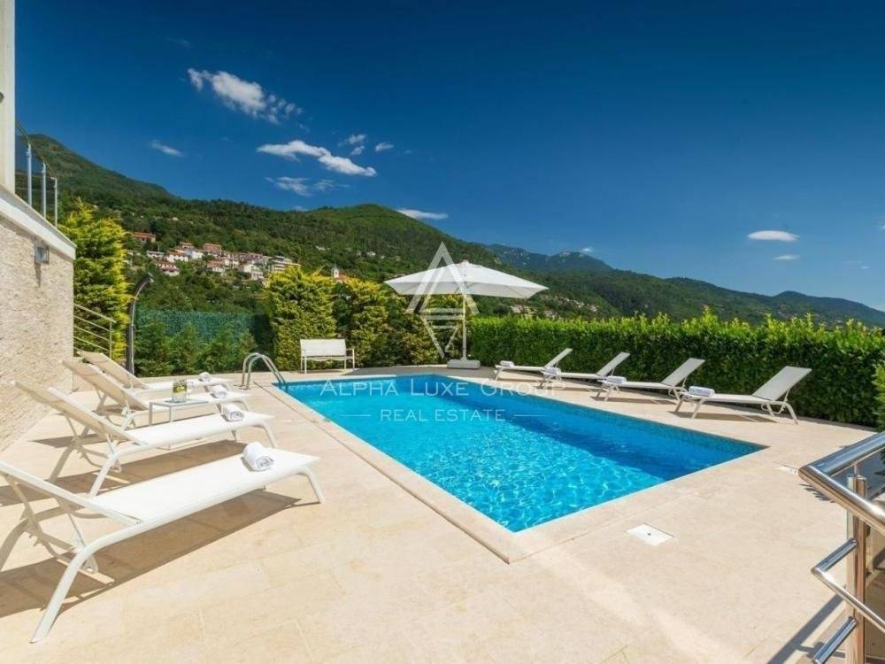 The initial floor of the villa spans an area of 99m2 and comprises a hallway, three bedrooms, a study, and a bathroom. Additionally, the villa boasts two balconies and two terraces, each measuring 19m2. These outdoor areas provide breathtaking views of Kvarner Bay to the south and the natural park surrounding mountain Učka to the west.