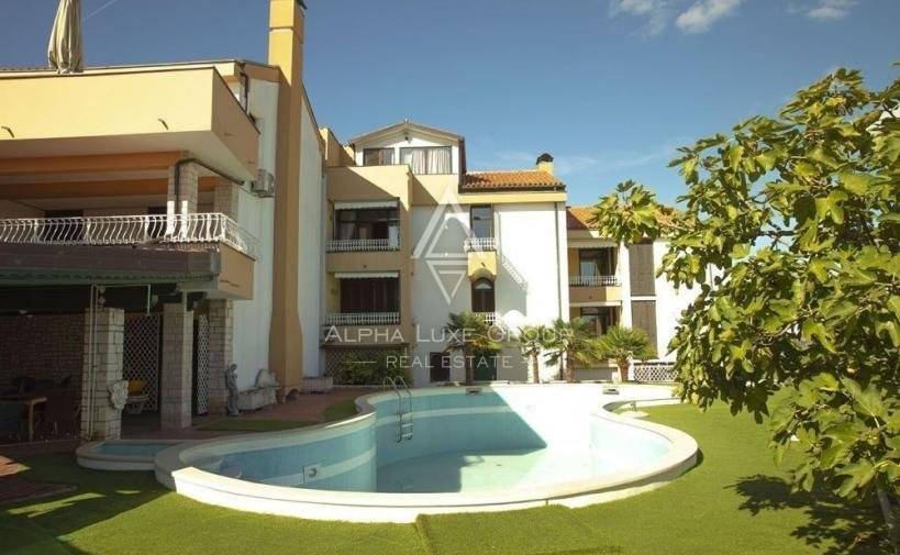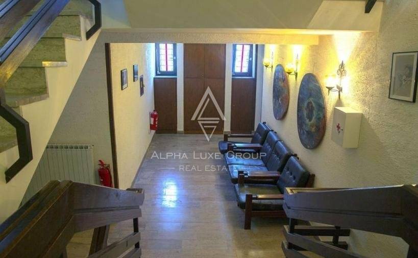It stretches over a building lot of 2600 m2. The house consists of a prominent apartment of 200 m2 and six apartments (two bedrooms and 4 1 bedrooms), a 60 m2 pub, a covered outdoor terrace, a large garden, large swimming pool. 91 m2, tennis court. Court, a 63-square-meter basement, a boiler room, several storage rooms, two garages, and more than ten parking spaces.