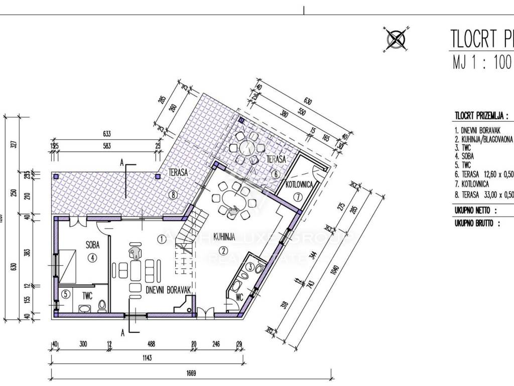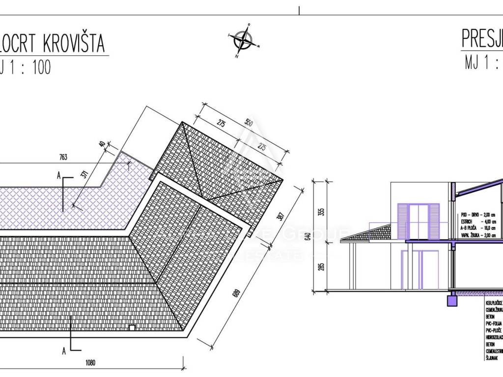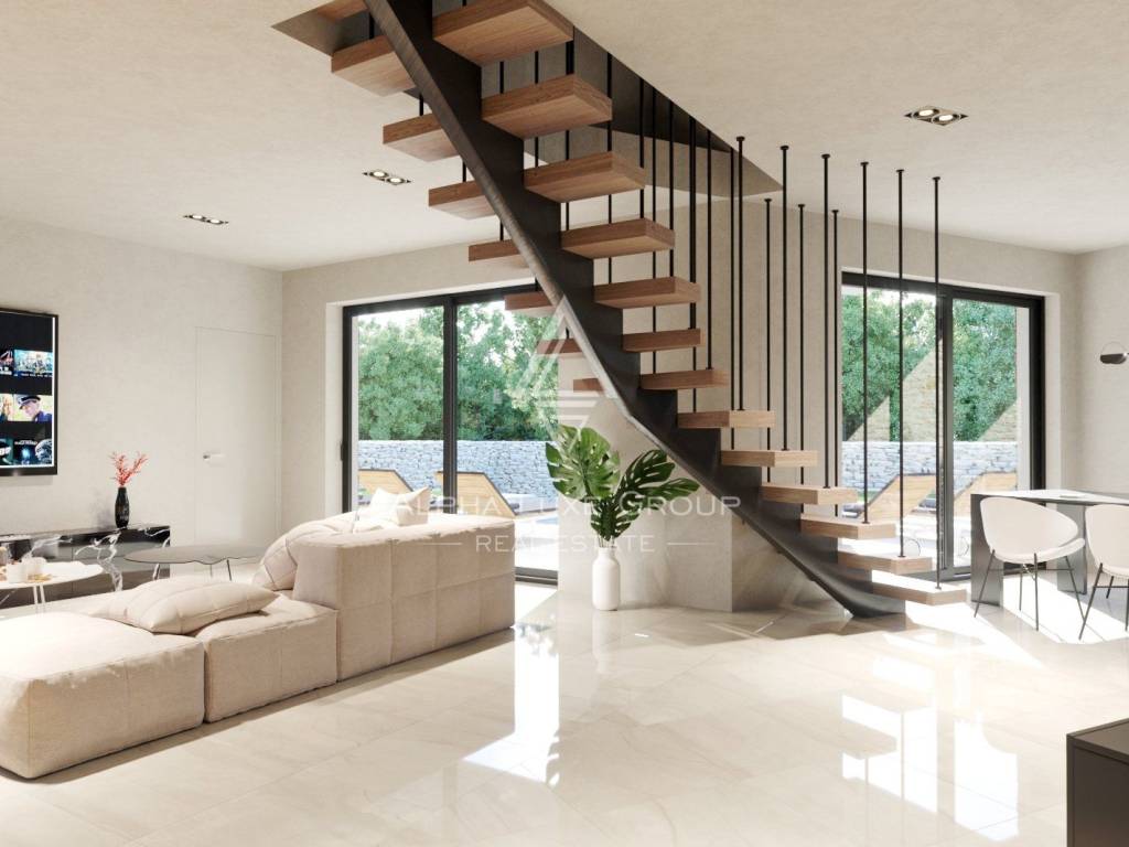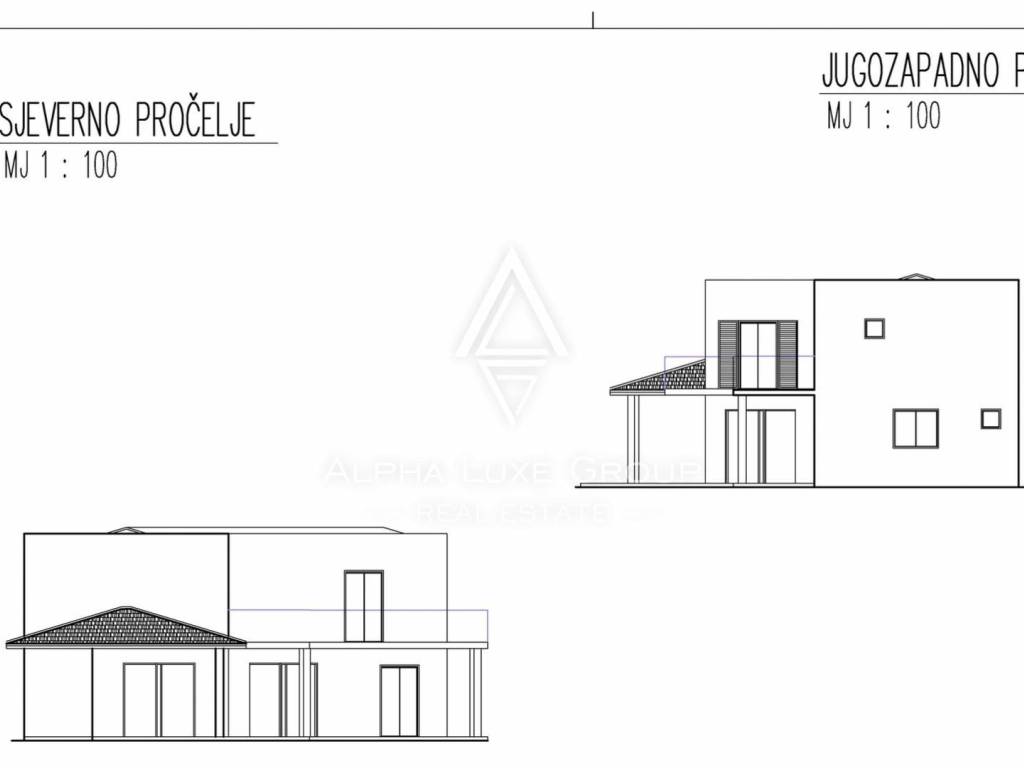 ALPHA LUXE GROUP is selling a Villa 15 km away from center Porec. The house consists of 2 floors: the ground floor and the first floor. The house has an area of 189 m2 with 609 m2 of the garden.