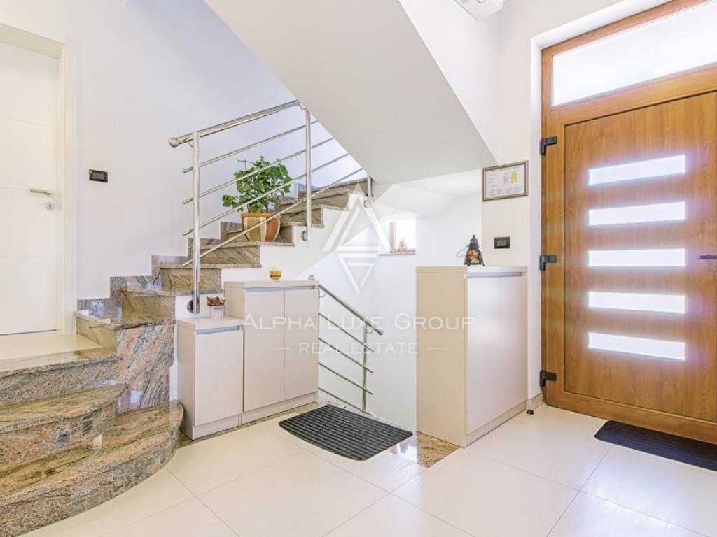 This beautiful residence with a pool is not far from the ancient Pula's centre. With a 337 m2 of living area and a Plot of 550 m2, The basement, ground floor, and first level are three levels of the building. Two rooms and a toilet with a shower are located in the basement. One room has a play area, while the other has a sauna and relaxation zone.