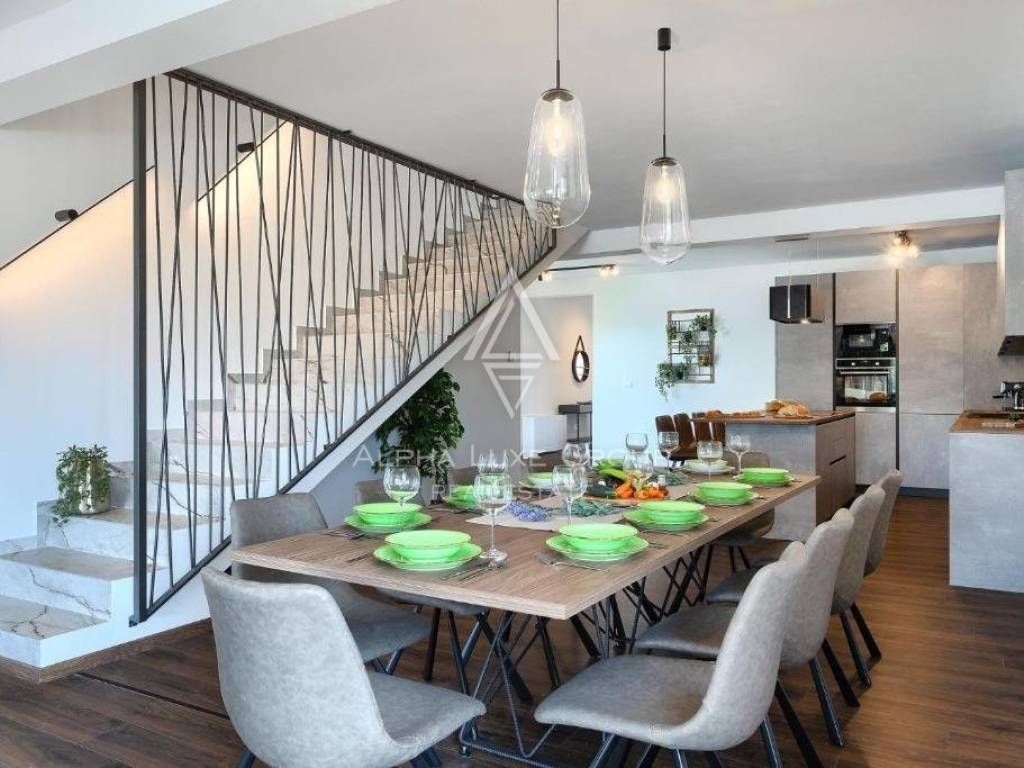 Nestled in the scenic heart of Istria, between Pula and Pazin, the charming town of Svetvinčenat is home to this newly built, modern villa. Surrounded by lush greenery, forests, pastures, vineyards, and a notable castle in the town center, this location offers a picturesque setting.