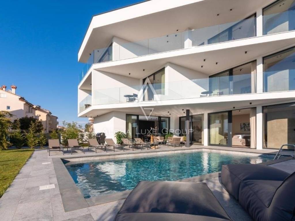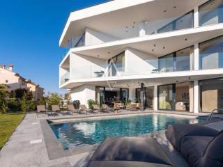 Spanning 568 m² across three floors, this villa features five spacious bedrooms, each with a private balcony and en-suite bathroom, providing a total of seven bathrooms. The home also includes two large living rooms, two fully equipped kitchens, and elegant dining areas. The interior design, crafted by a renowned Istrian designer, exudes luxury, warmth, and sophistication, with high-quality materials used throughout the property, from construction to the finest furnishings.