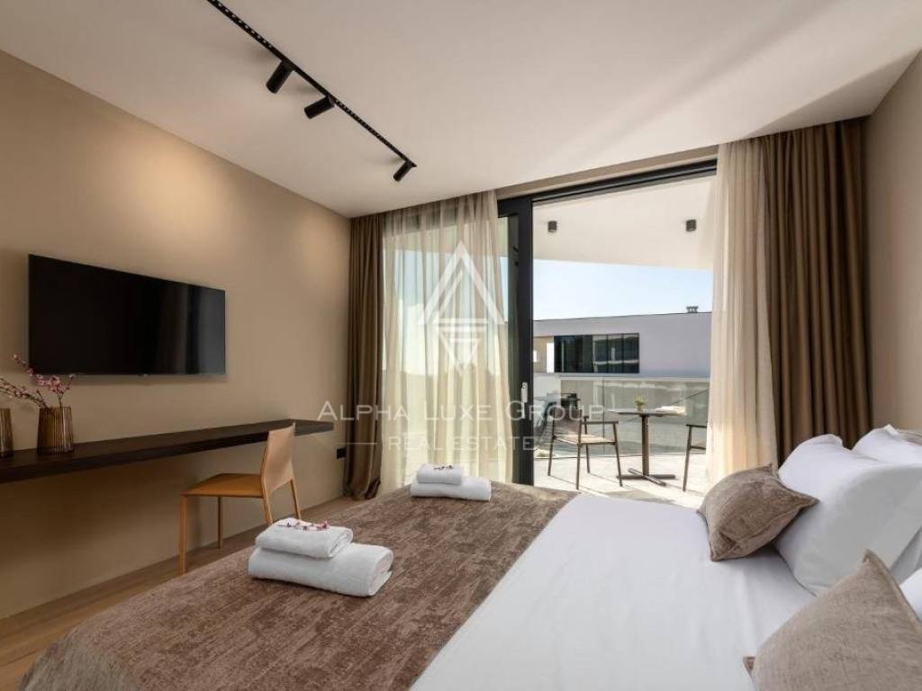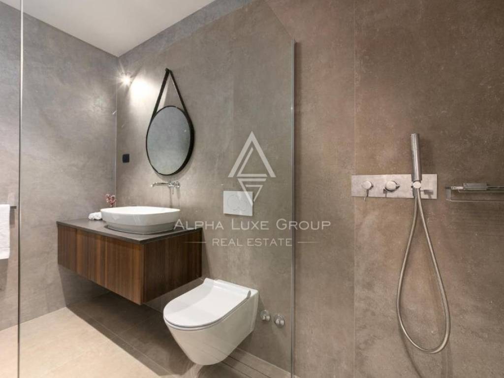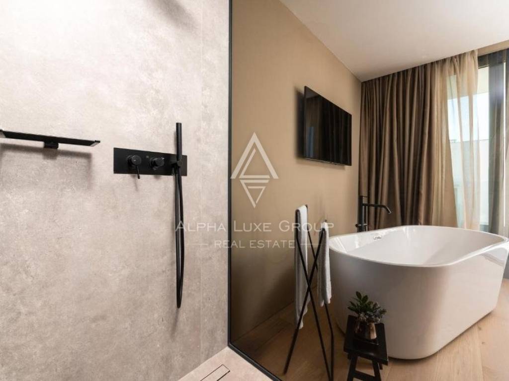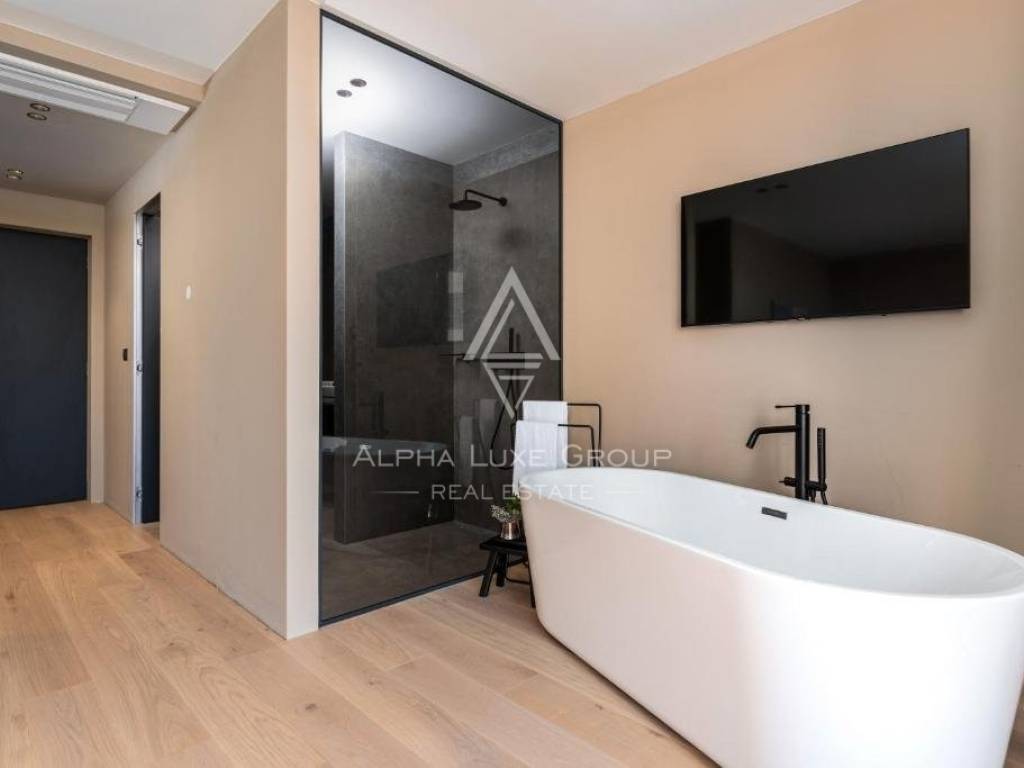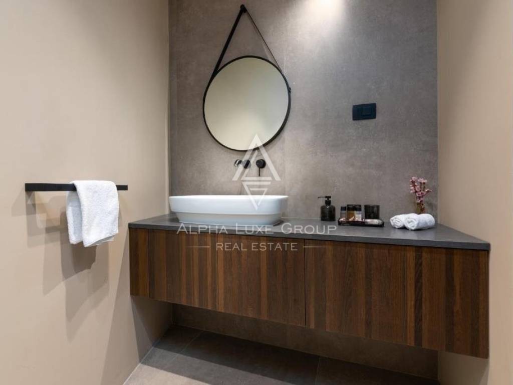 The villa is equipped with floor heating and ceiling cooling systems, powered by top-notch Mitsubishi air conditioners, ensuring year-round comfort. With a capacity to accommodate up to 10 guests, the layout is thoughtfully designed to offer privacy and space for relaxation. The crowning jewel of the villa is a 50 m² rooftop terrace, featuring a landscaped garden, palm trees, a jacuzzi, sauna, and a serene relaxation area that provides an unforgettable panoramic view.
