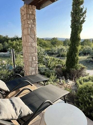 Outdoor Area: 2000 m² private garden, olive tree shade, garage for bicycles, children's playground, small pool with shower.